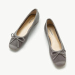 - Features a squared-toe ballet flat, a subtle yet distinctive element that adds a touch of modernity to the classic design. The splicing design of the toe and the shoe body presents a structuralist aesthetic.