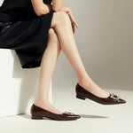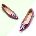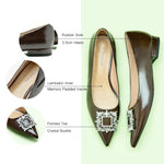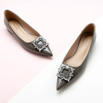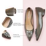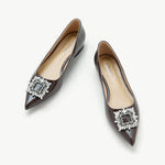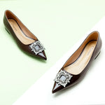- Made for glamorous occasions, these exquisite flats will steal the spotlight with chic pointed-toe and dazzling crystal buckle that exude glistening charm. The comfy flat heel and a grippy sole adorned with iconic prints ensure effortless wear while maintaining a versatile look that complements both casual and elegant outfits.