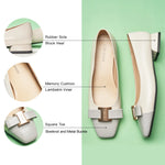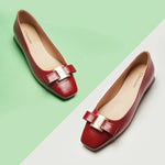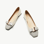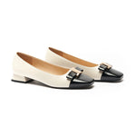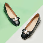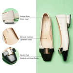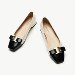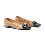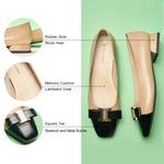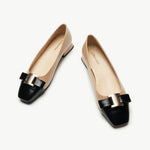 - Boasting a unique splicing design,these flats offer two style options:monochromatic splicing for a subtle look and dual-color splicing for a bold visual impact.With soft leather finish and a grippy sole adorned with iconic prints,your feet will luxuriate in unparalleled comfort.The smooth square toe,highlighted by a brand logo metal buckle from CParavano on the vamp,exudes feminine grace and refinement.