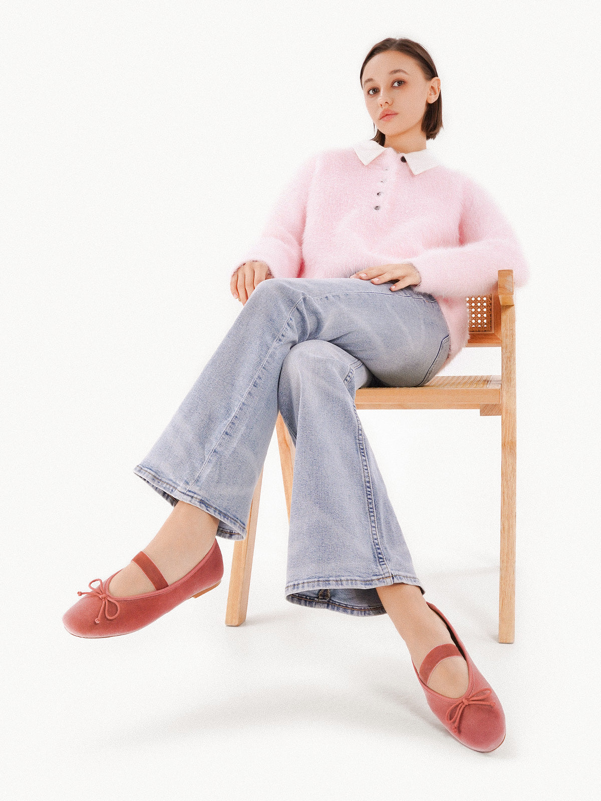 This Almond-Toe ballet flat blends softness with sophistication. The delicate knot detail paired with an elastic band creates both charm and ease of wear. Subtle elegance and everyday comfort come together in a timeless design.