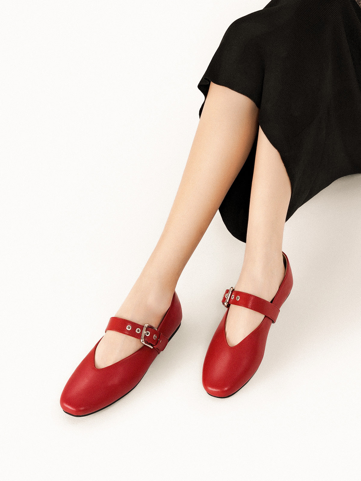 Grommet V-Cut Design Mary Jane Flats(Remy)