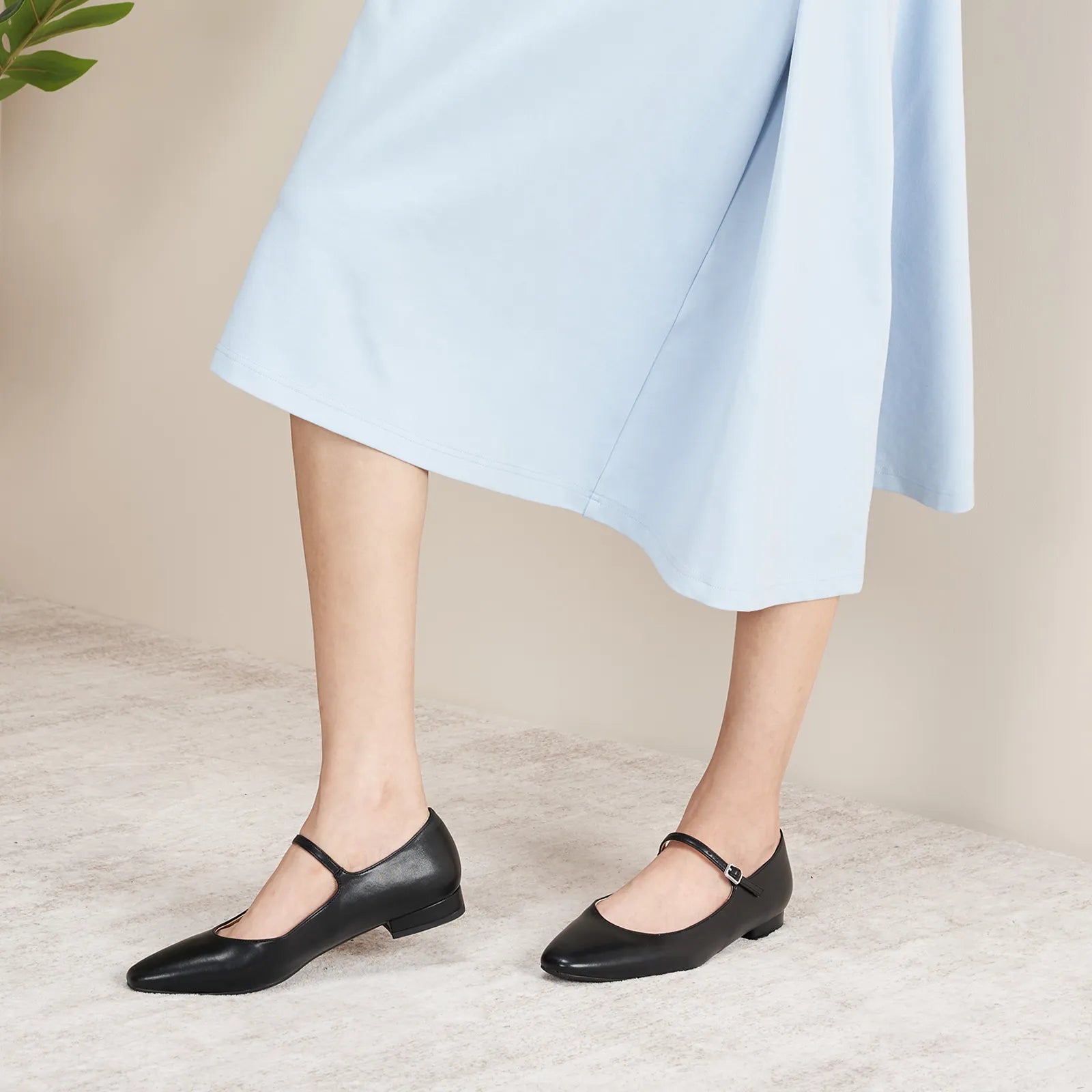 Step into timeless elegance with these classic Mary Jane flats. Crafted with a sleek, minimalist design, they feature a smooth finish that adds a touch of sophistication to any outfit. The delicate buckle strap ensures a secure fit, while the almond-toe silhouette offers both comfort and style. Perfect for daily wear or special occasions, these flats effortlessly blend versatility with chic appeal.