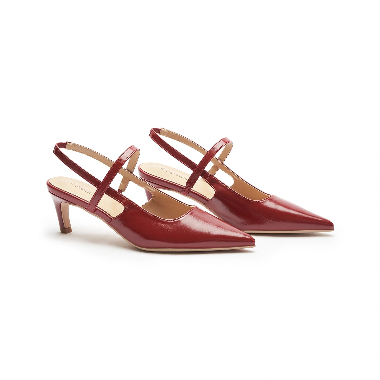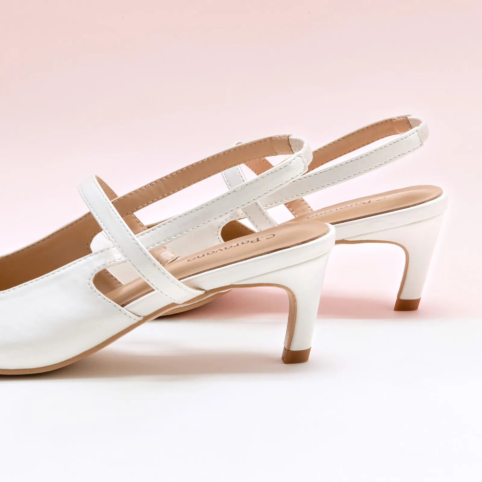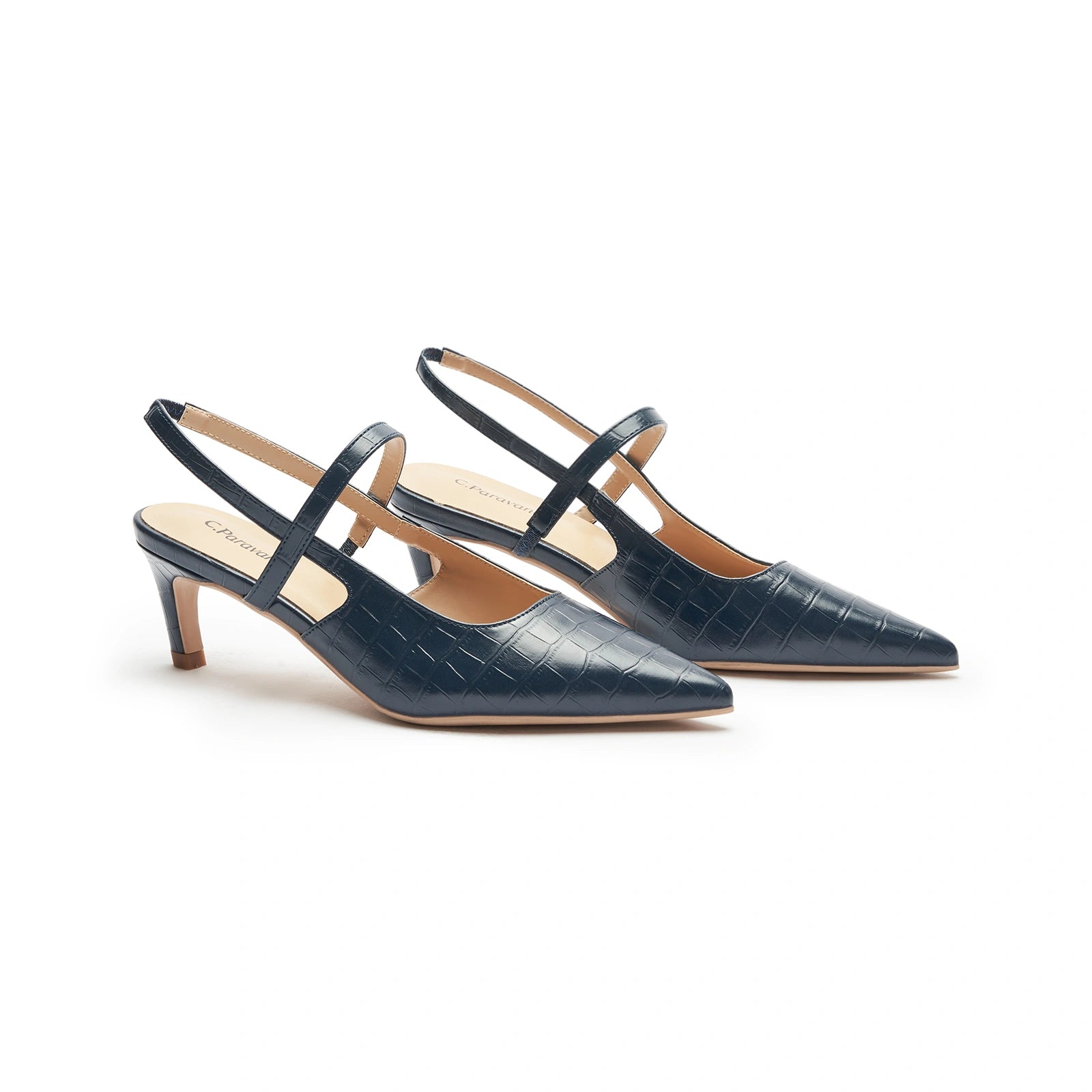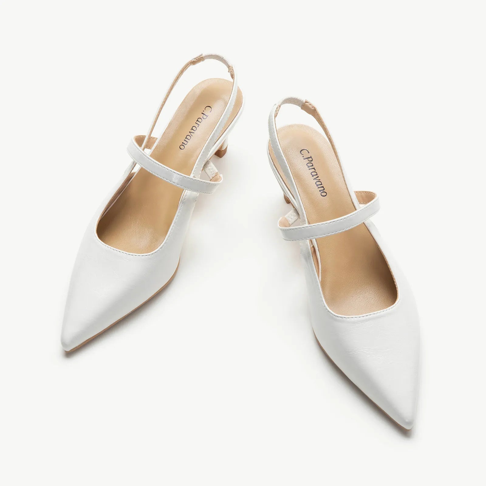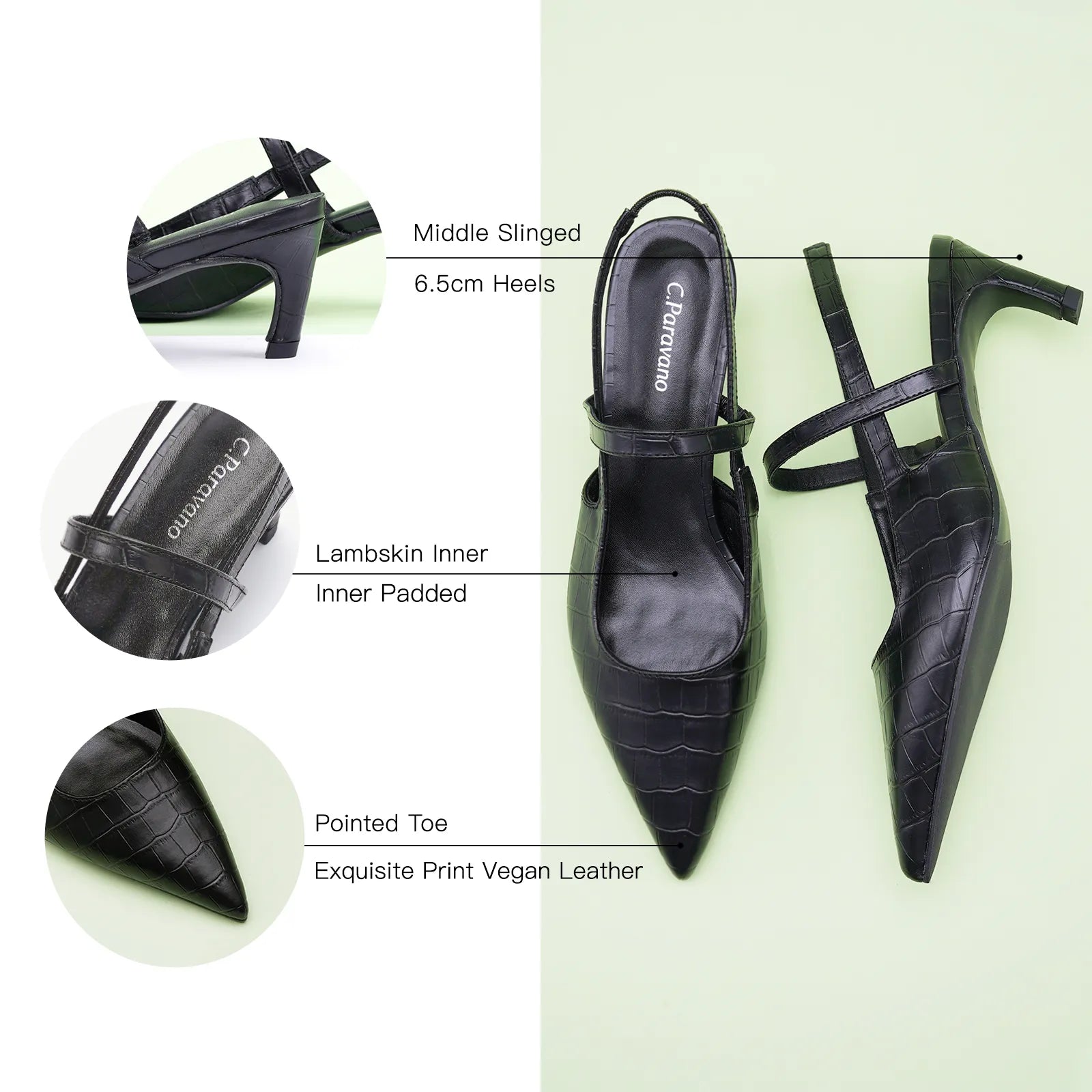 - C.Paravano slingback heels have a sharp silhouette with a pointed toe, slim elastic straps, soft leather lining and a sculpted heel measuring 65mm. The instep strap ensures a snug fit, preventing heel slippage. You can wear them to go from work to dinner.