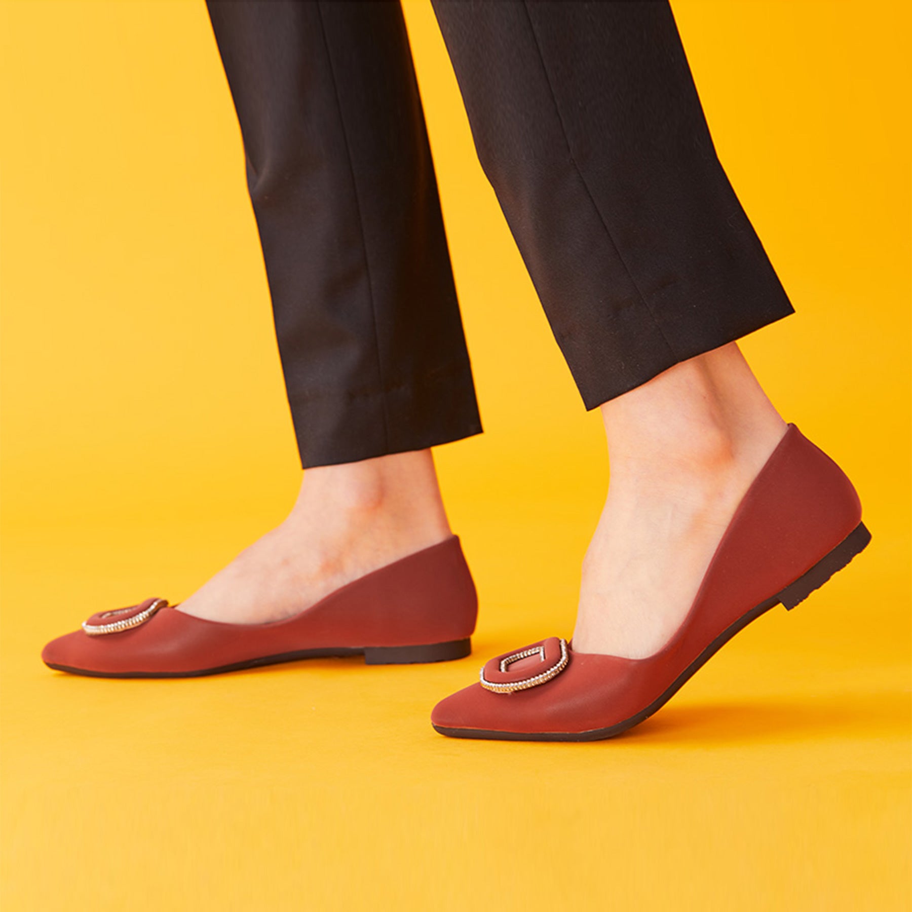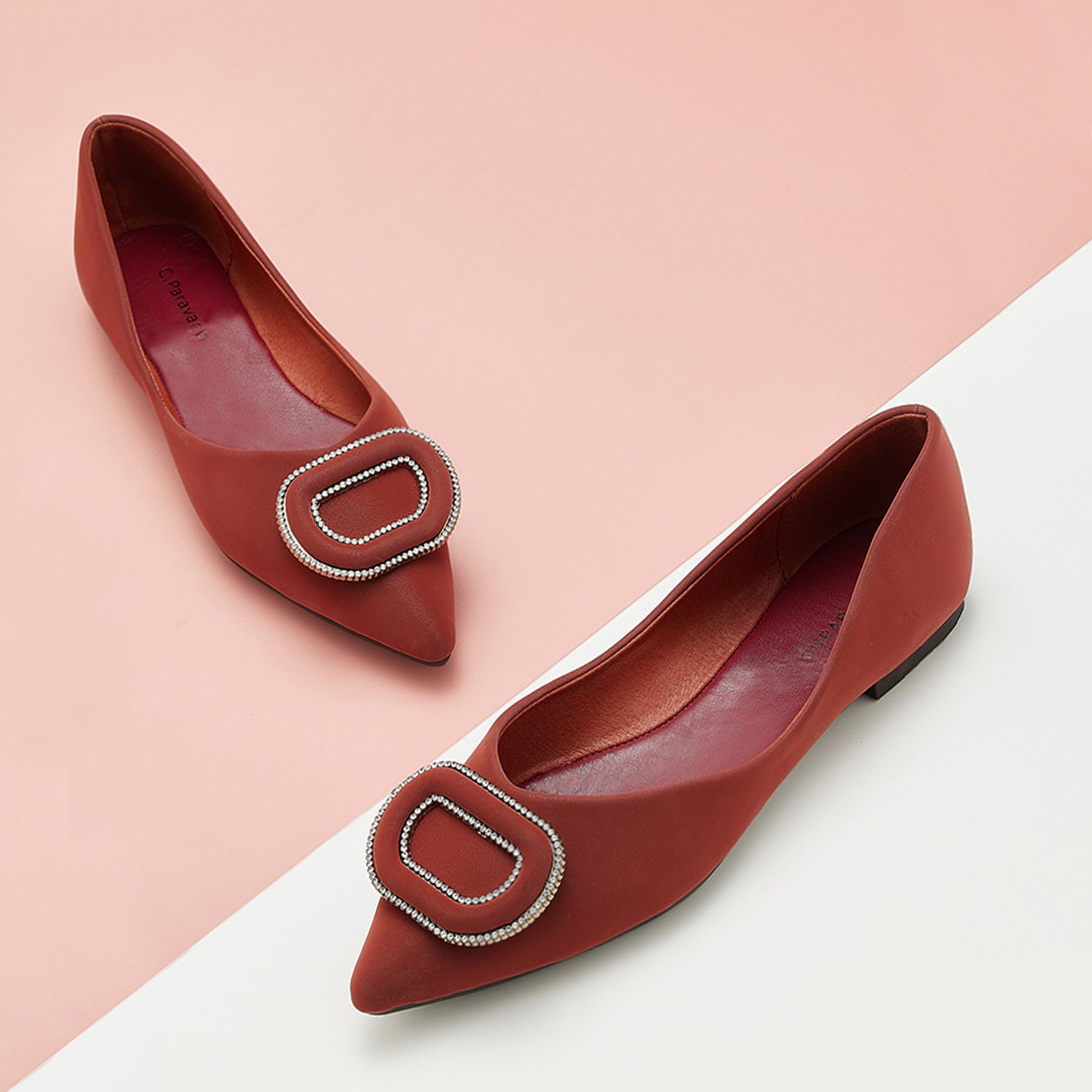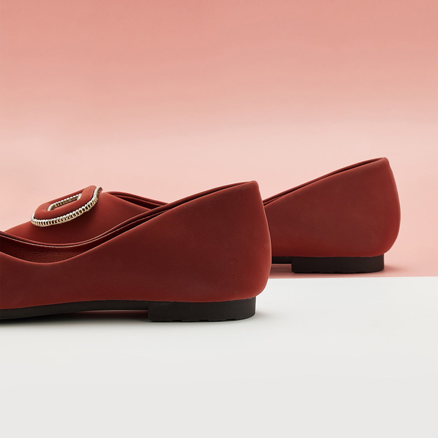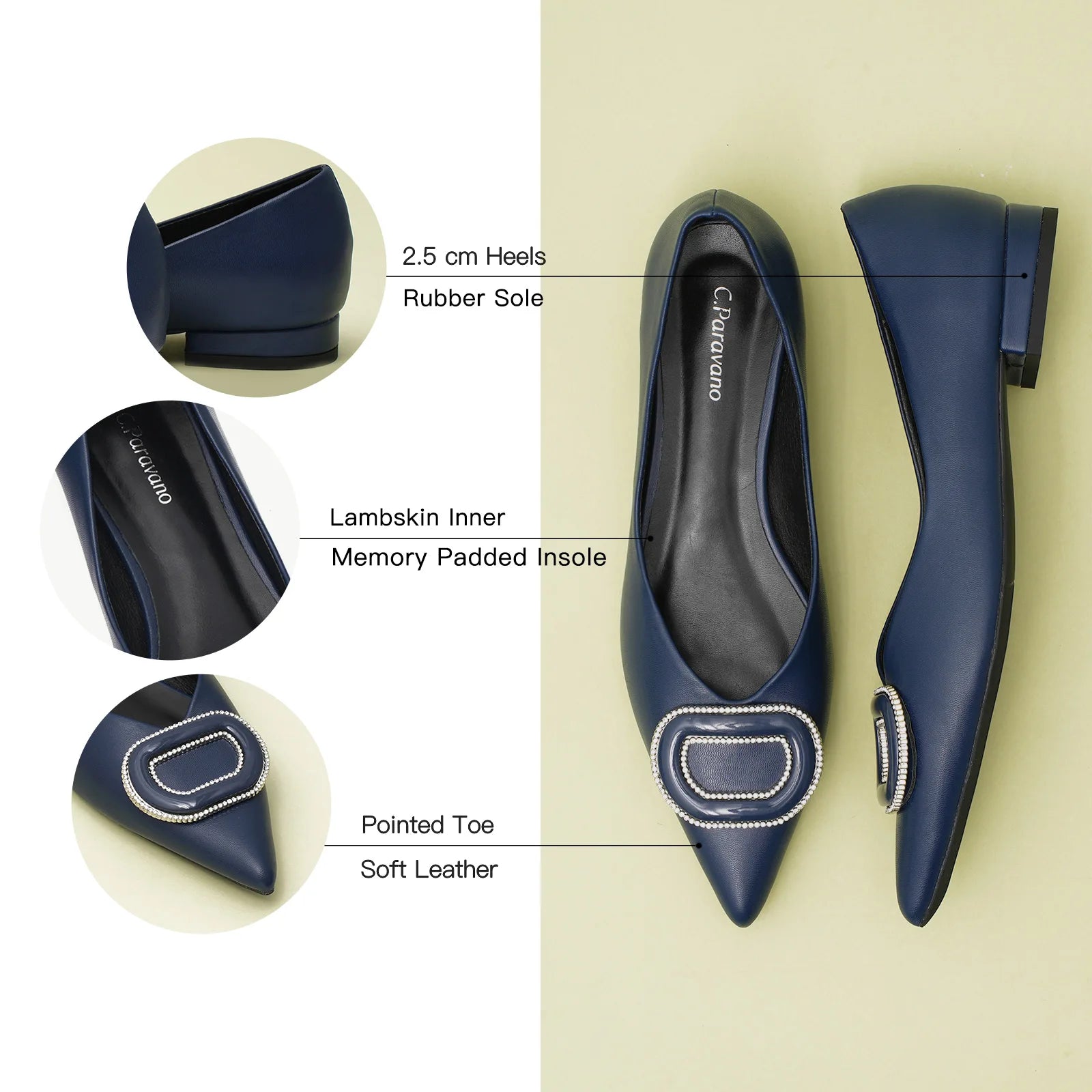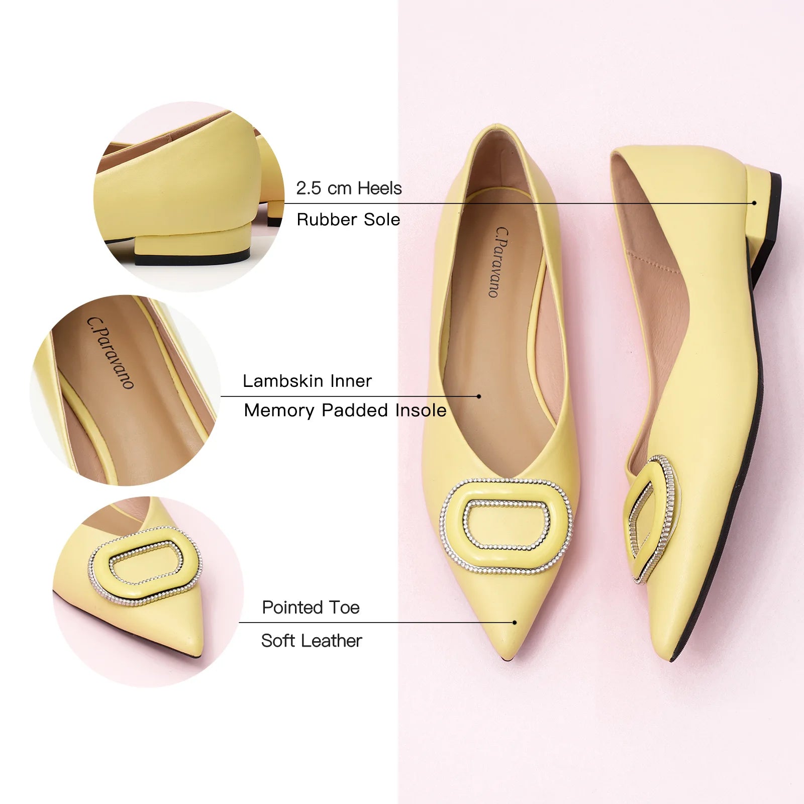 - Clean and chic, these soft leather flats will quickly become an essential part in your workwear wardrobe. Timeless pointed-toes create an sophisticated profile that is further enhanced with distinctive buckle embellishment and a grippy sole adorned with iconic prints. However you choose to wear them, they will look elegant.