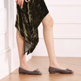 Suede Toe Bowknot Ballet Flats in Dark Grey, a modern and versatile choice for adding a touch of urban sophistication to your ensemble