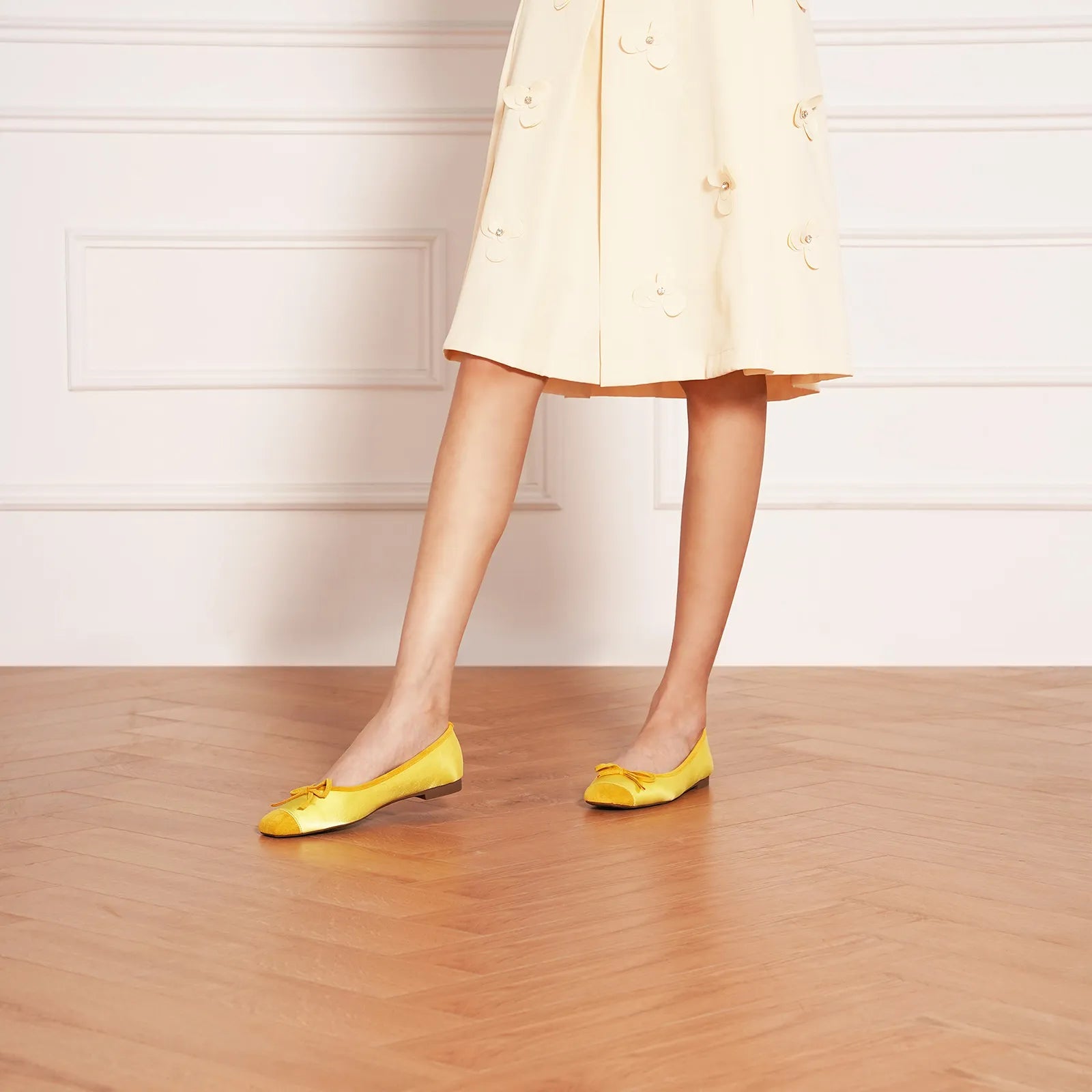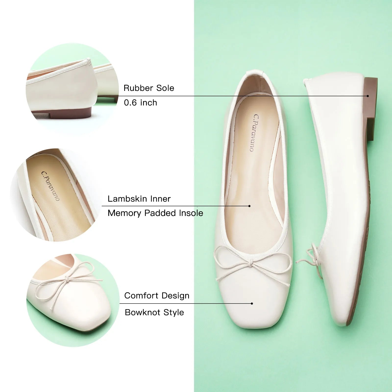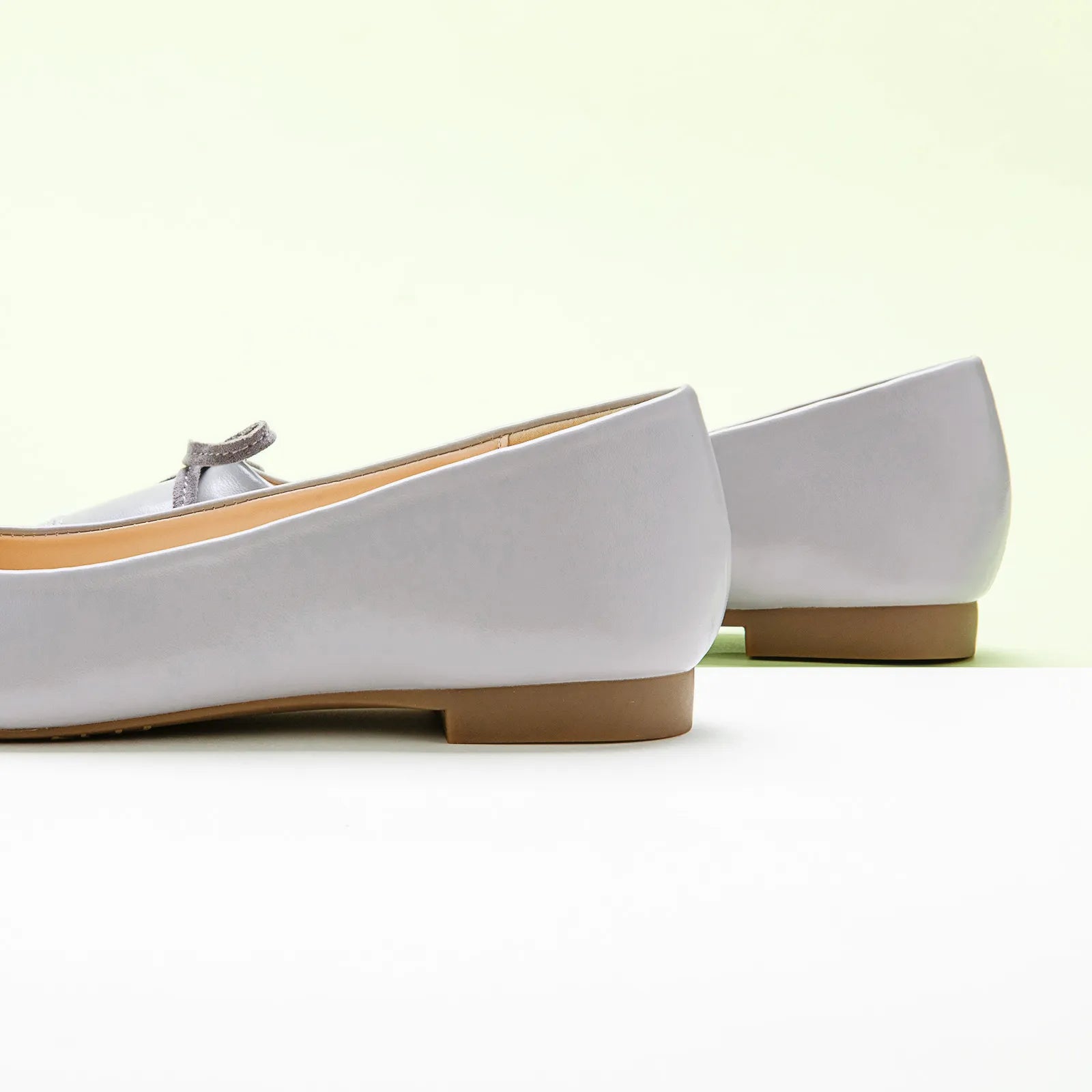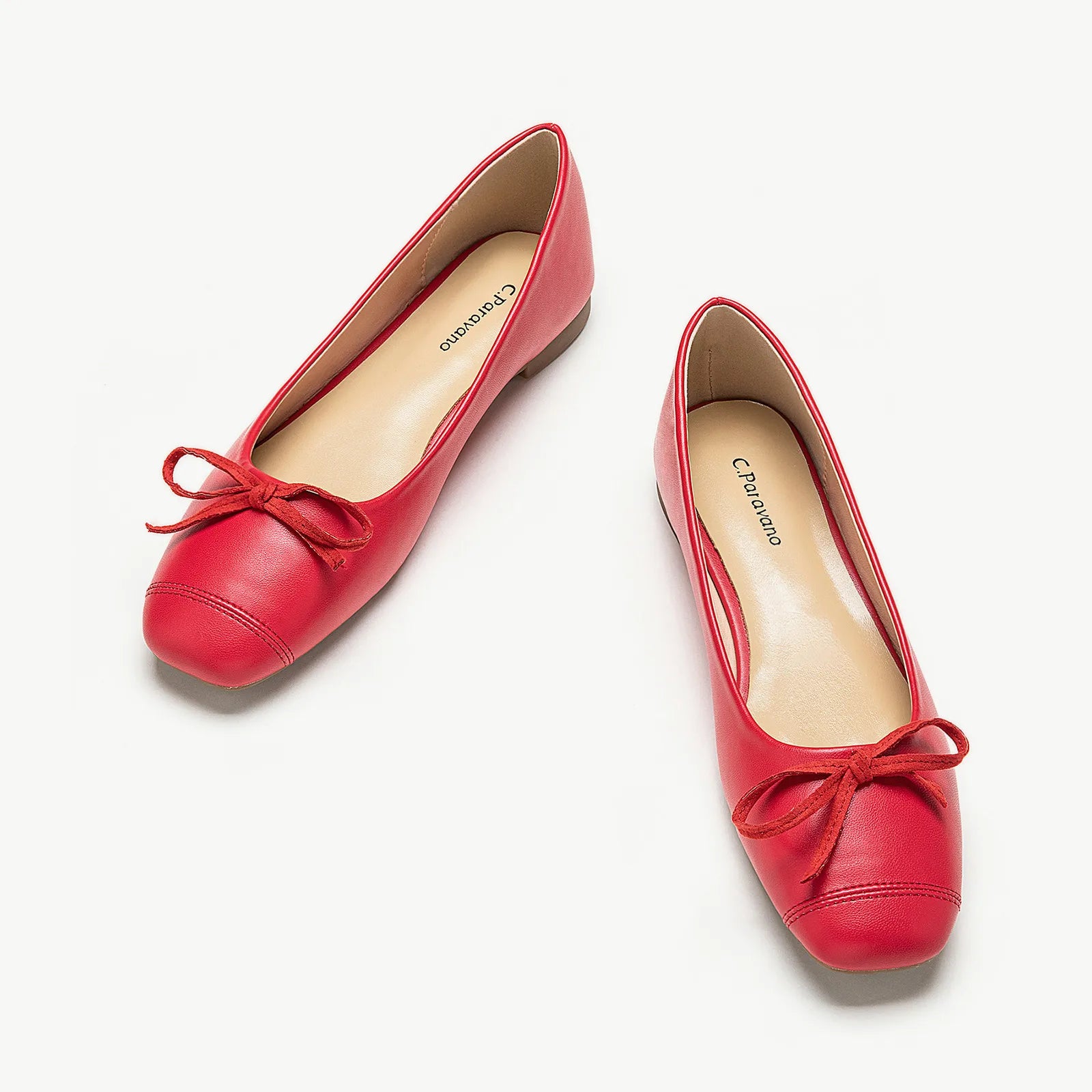 Features a squared-toe ballet flat, a subtle yet distinctive element that adds a touch of modernity to the classic design. The splicing design of the toe and the shoe body presents a structuralist aesthetic.