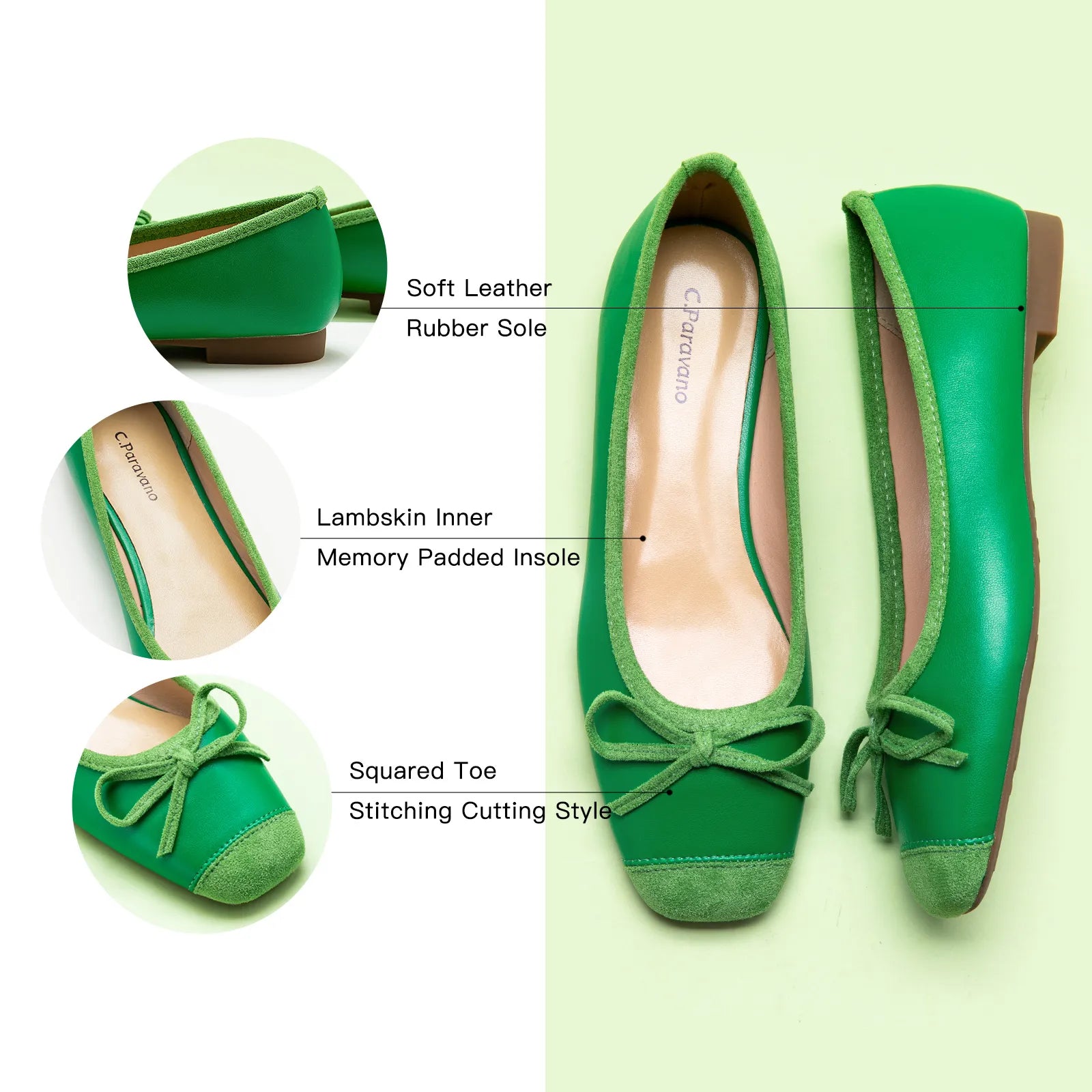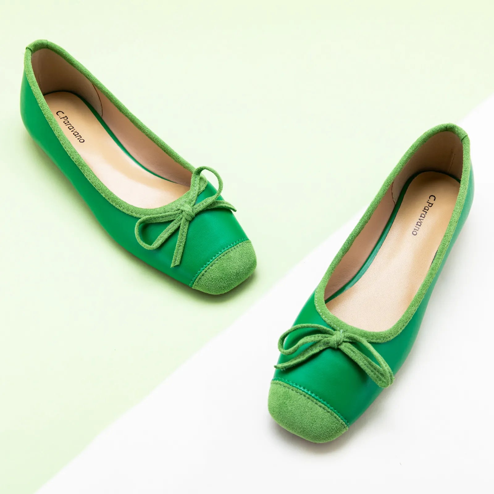 Dark Green Suede Toe Bowknot Ballet Flats, a vibrant and eye-catching choice for a bold and stylish look
