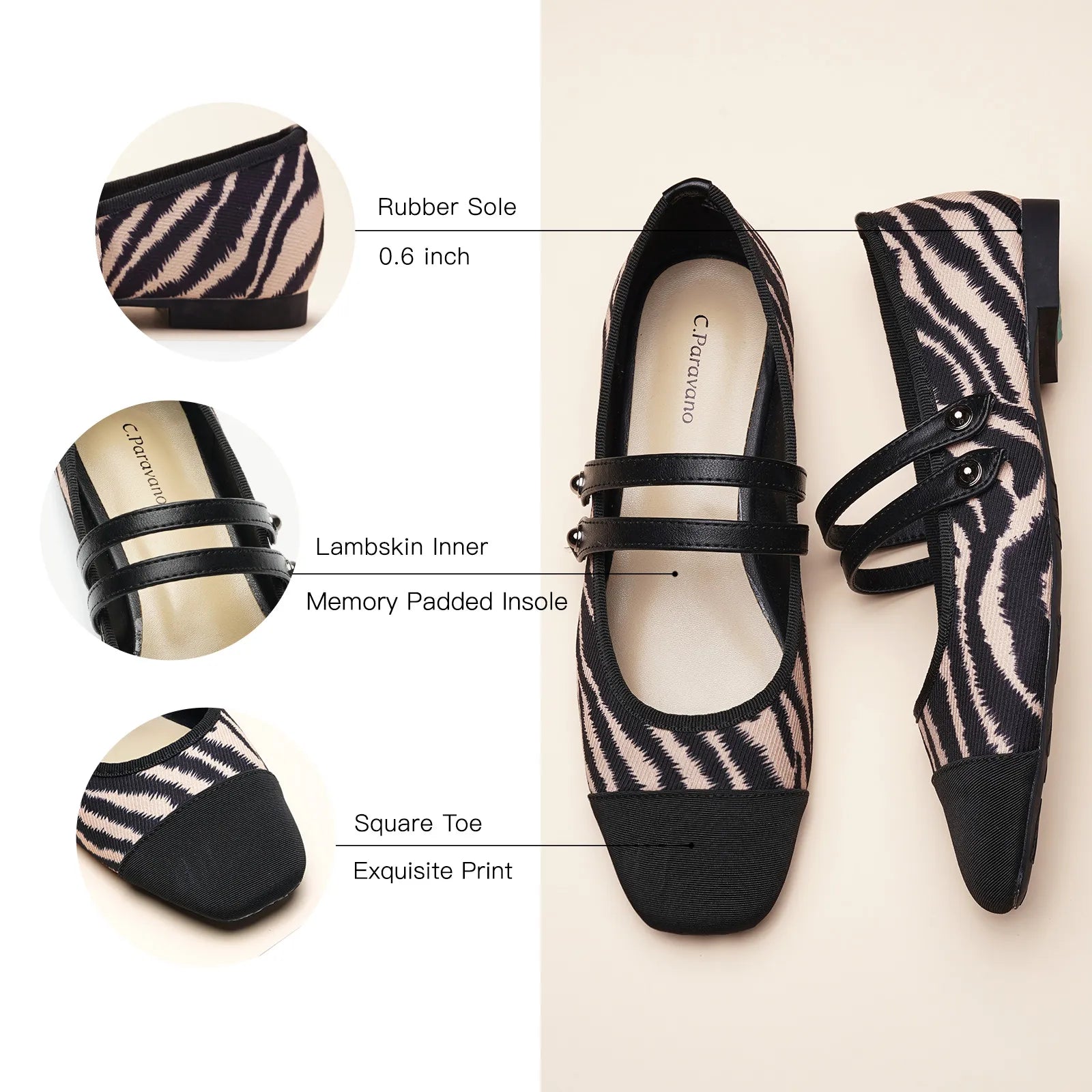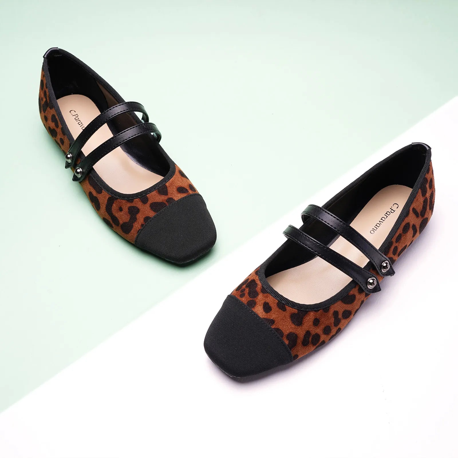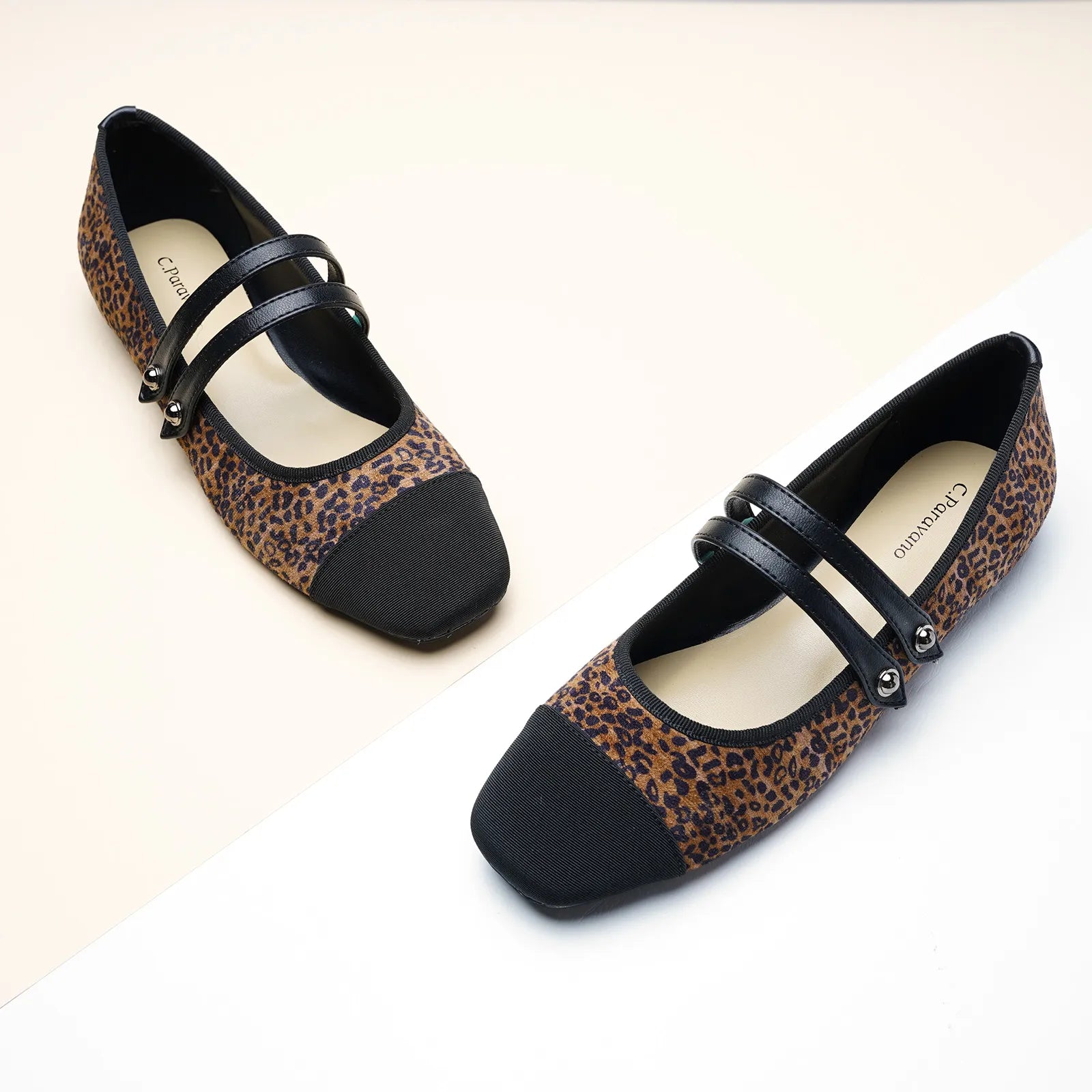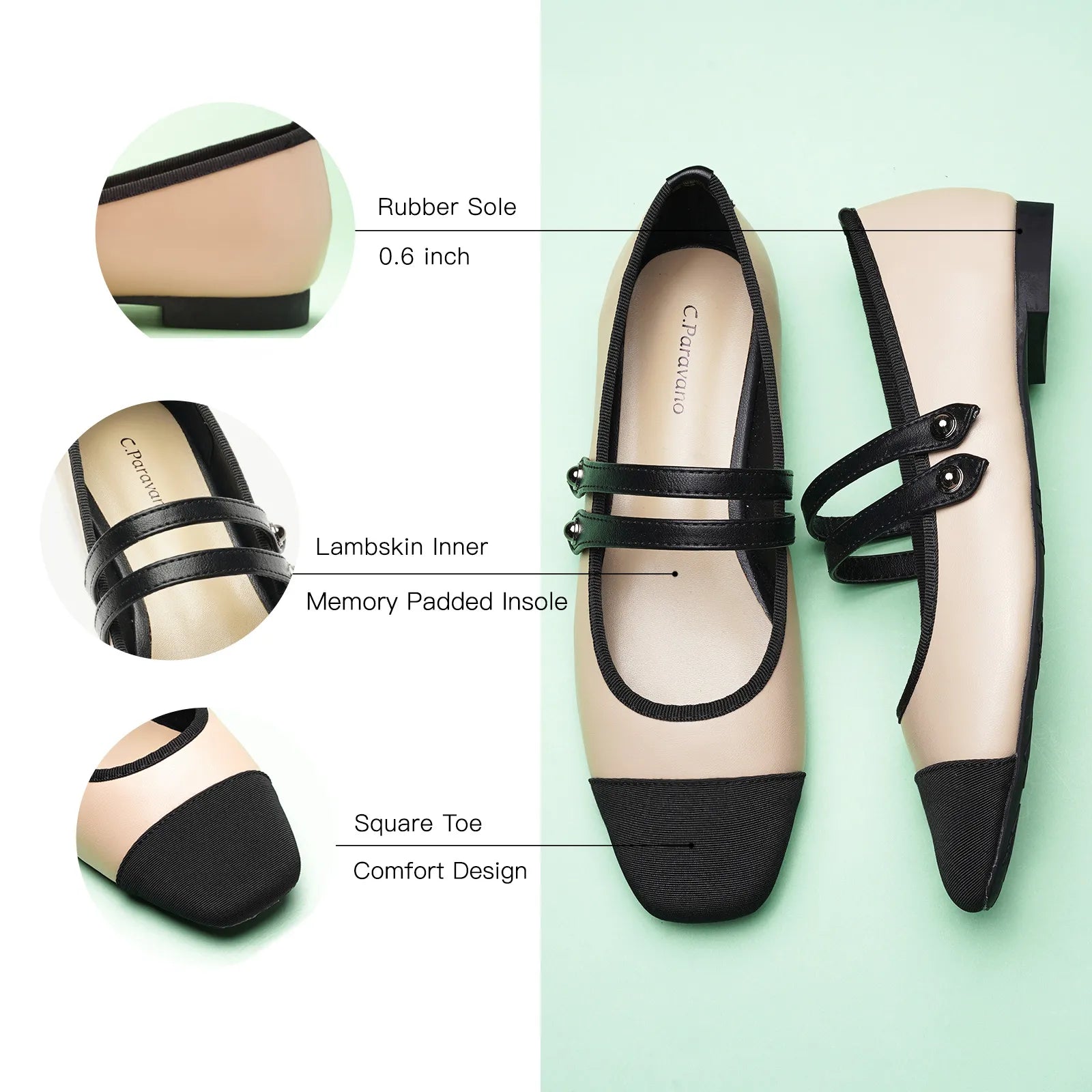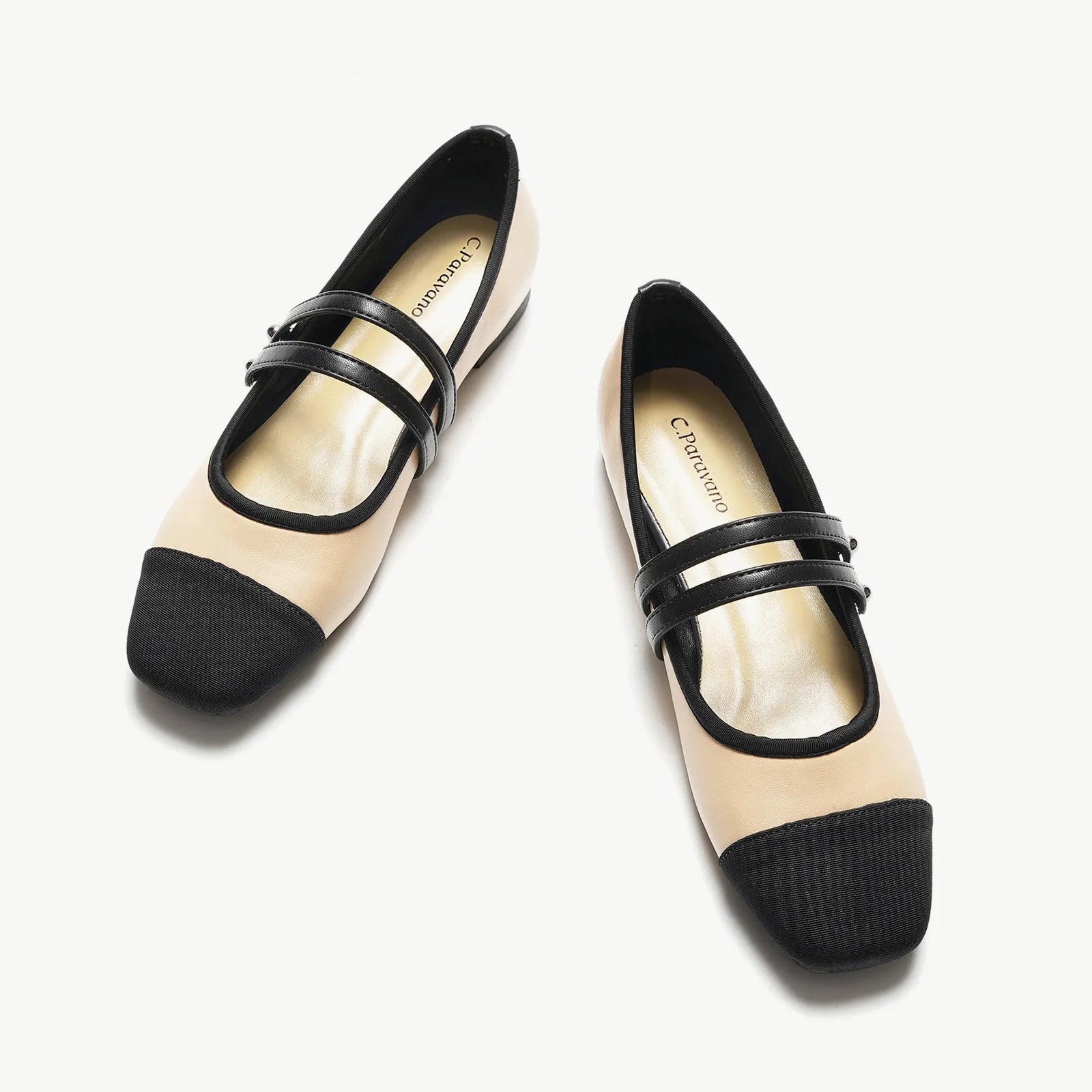 - Embrace a clean and classic aesthetic with these Mary Jane flats. They stand out with their two-tone design and textured finish. Featuring two elastic straps, they ensure a secure fit while adding a stylish flair to any outfit. The grippy sole, adorned with iconic prints, invites you to embark on an elegant and comfortable journey.