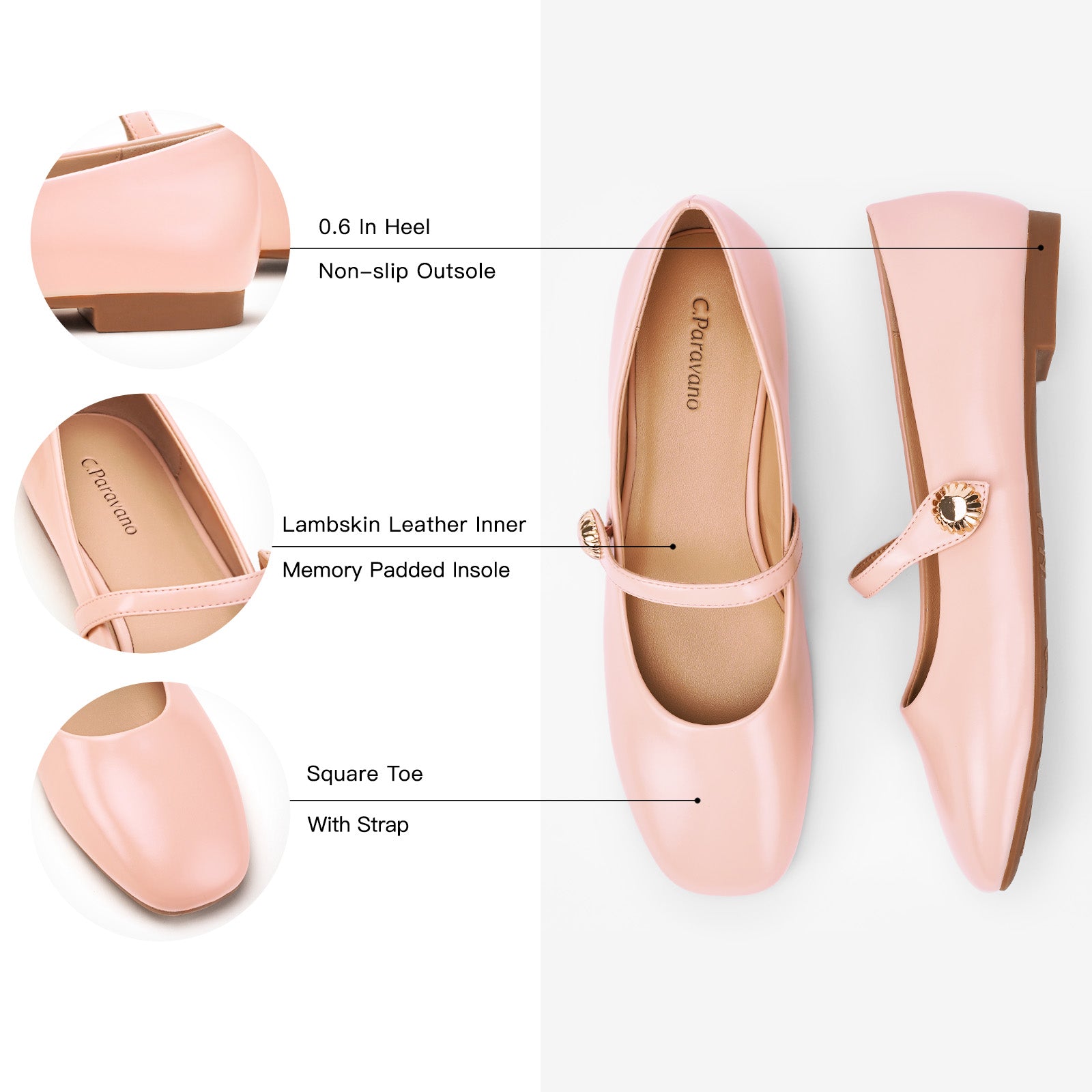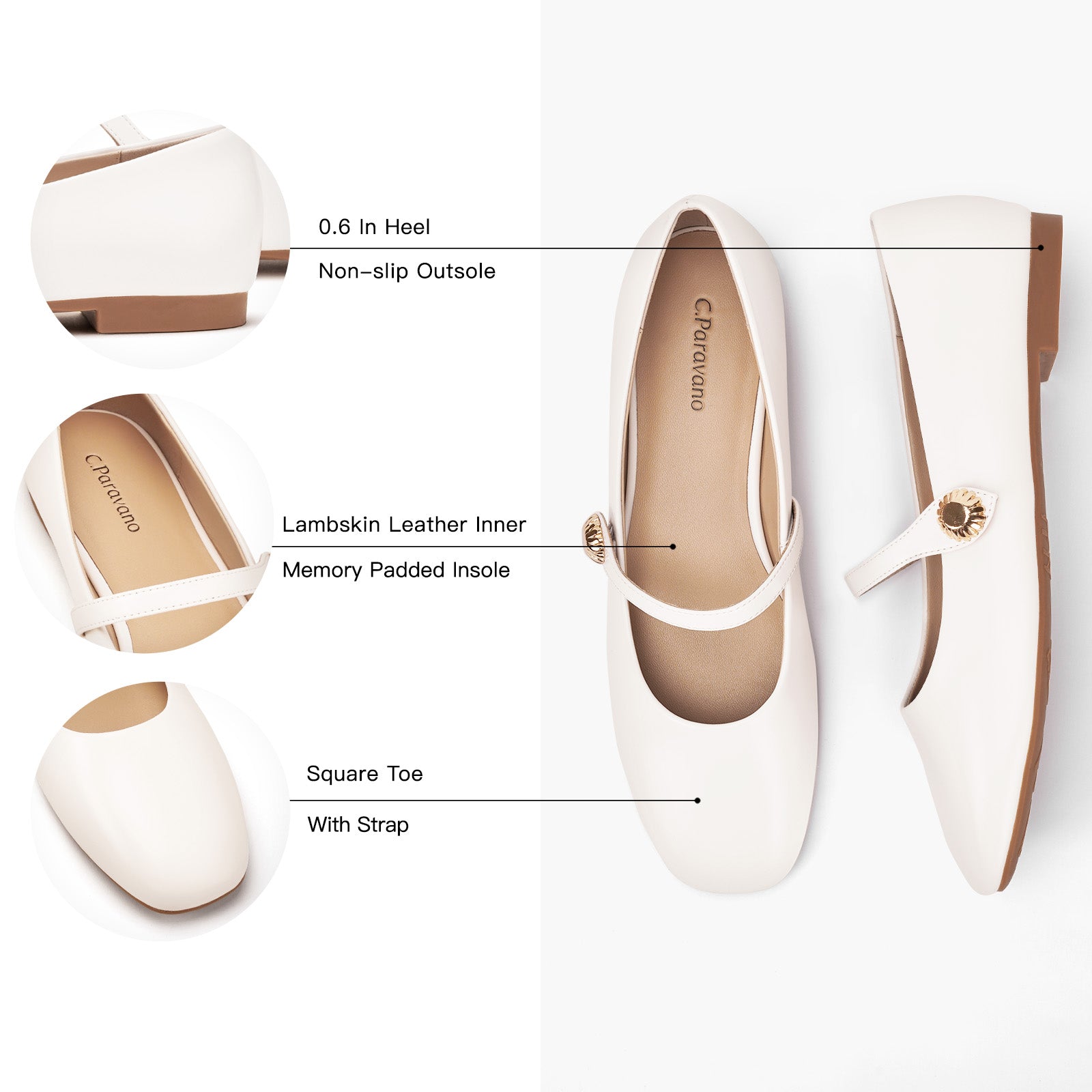- These are chic and comfy take on classic Mary Jane pairs. They're made from soft leather and have a round square toe, which make more space to your feet. The exquisite metal button is the perfect finishing touch for these shoes.