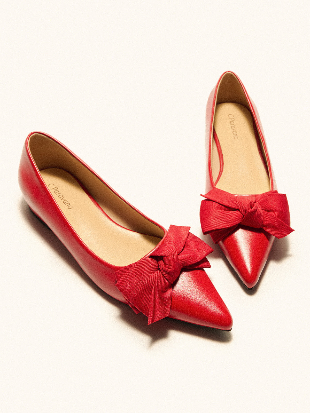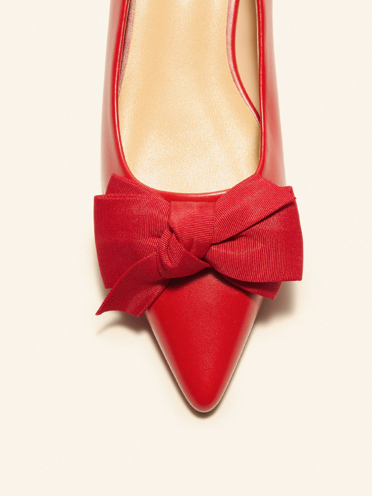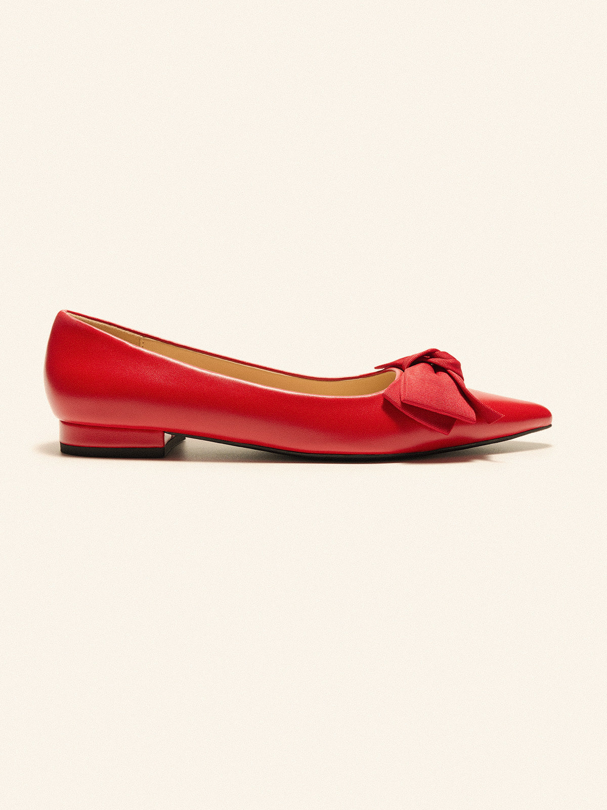 Grace your wardrobe with these matte pointed-toe flats. Fitting leather construction enhances the fit, and a grippy sole adorned with iconic prints ensure non-slip and wear resistance. Offset by a large cloth bow at the vamp, these flats capture attention with every step, striking the perfect balance between casual and elegant style.