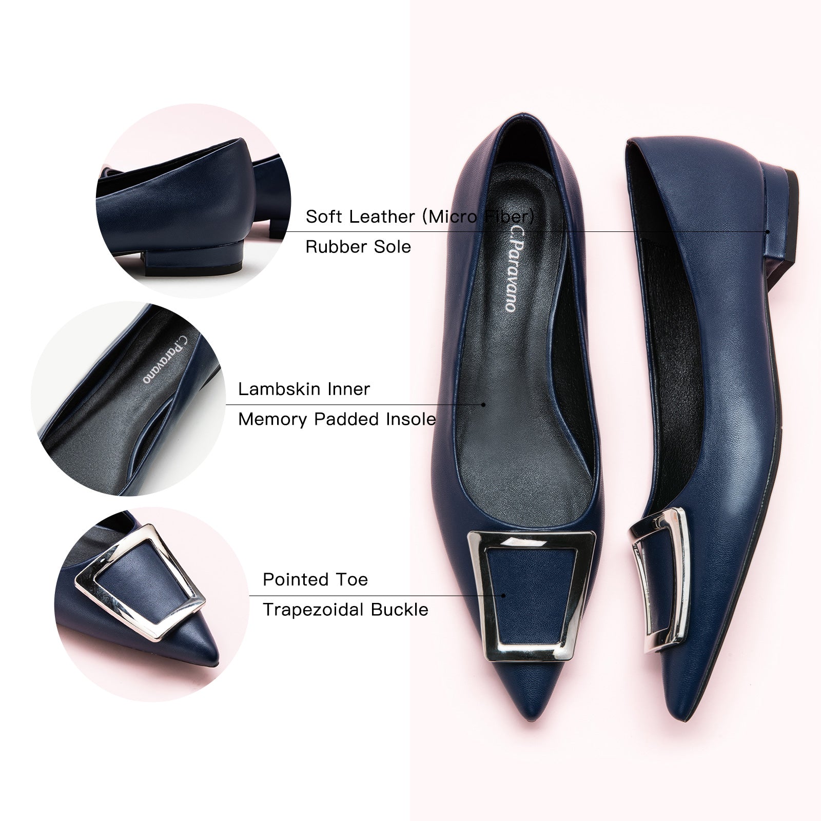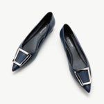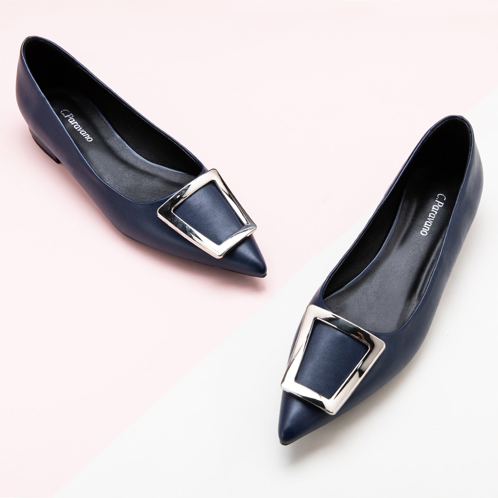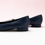 Trapezoidal Buckle Flats in Navy, a classic and versatile choice for a timeless and sophisticated look