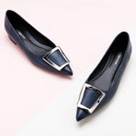 Deep Maritime Hues: Navy Trapezoidal Buckle Flats, perfect for a confident and fashionable look with a touch of ocean-inspired charm