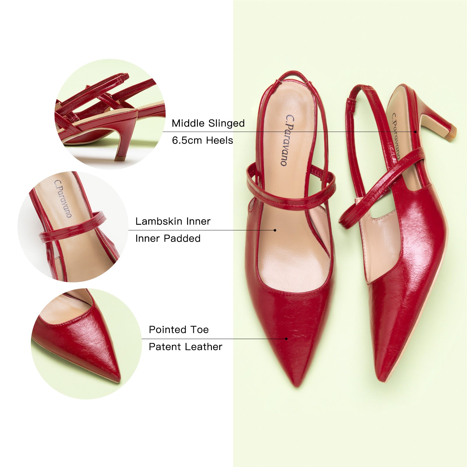 - Based on our classic Slingback, in addition to the pointed toe, stiletto heel and elastic strap, we have added exquisite croco print, making you look more feminine and luxurious from the details. The instep strap ensures a snug fit, preventing heel slippage.