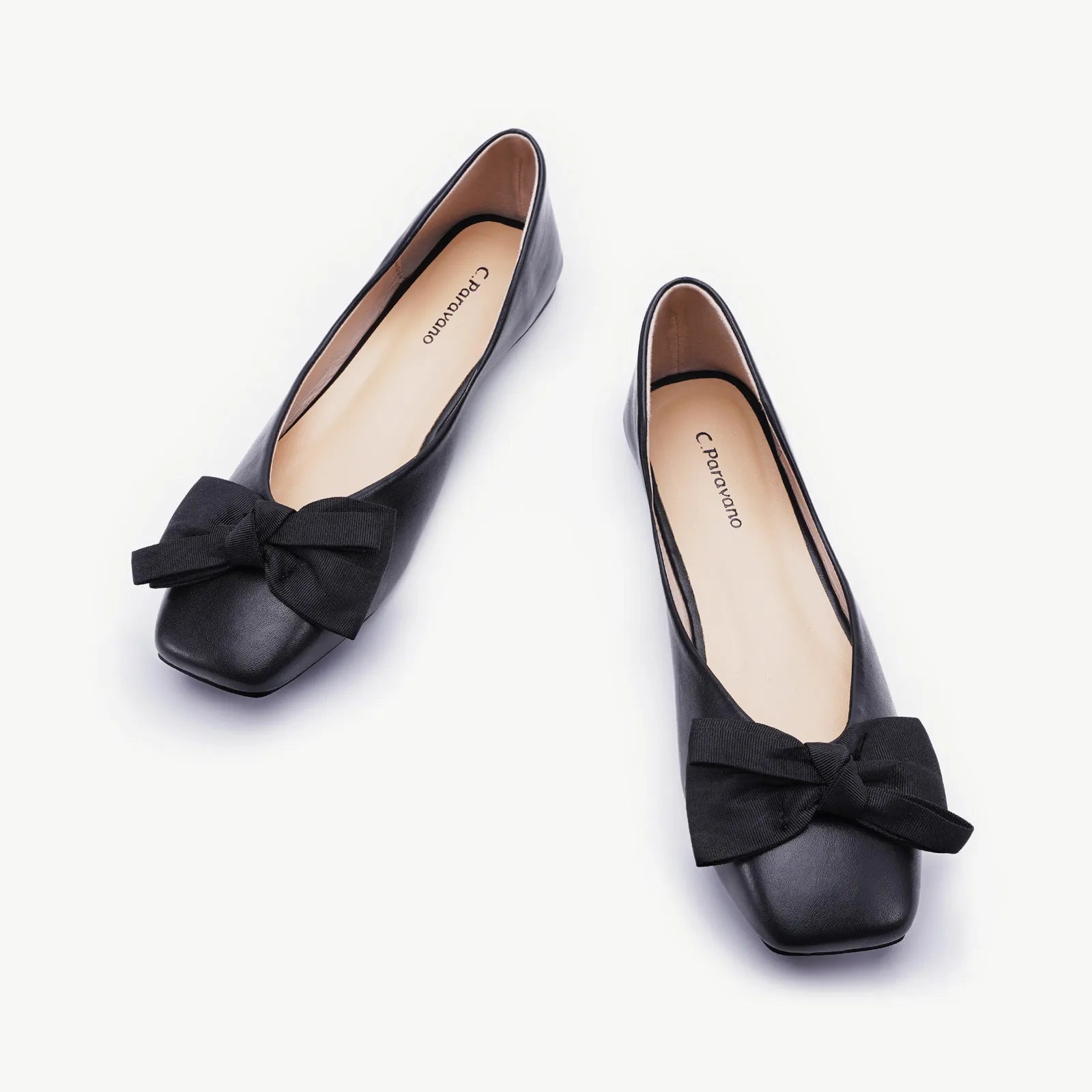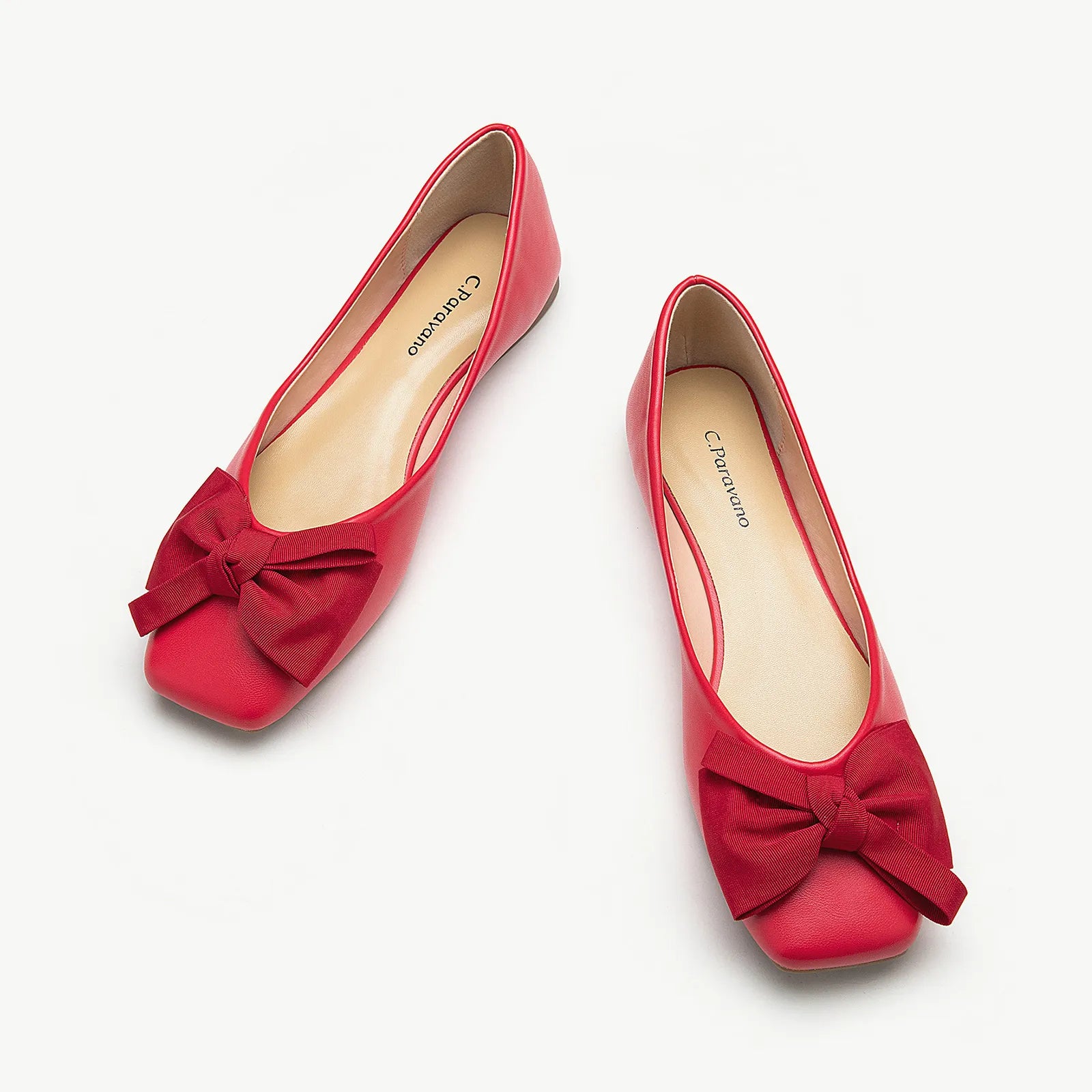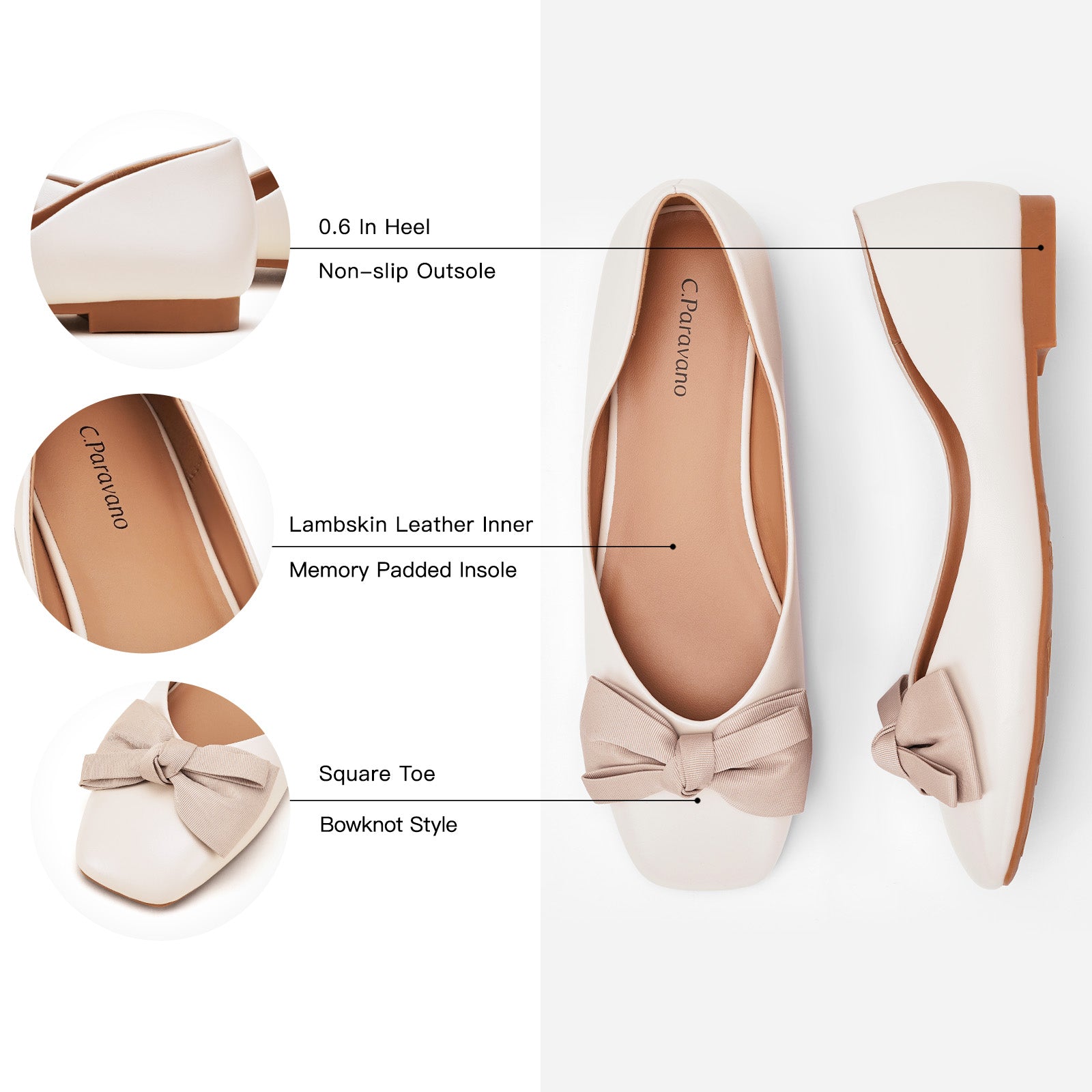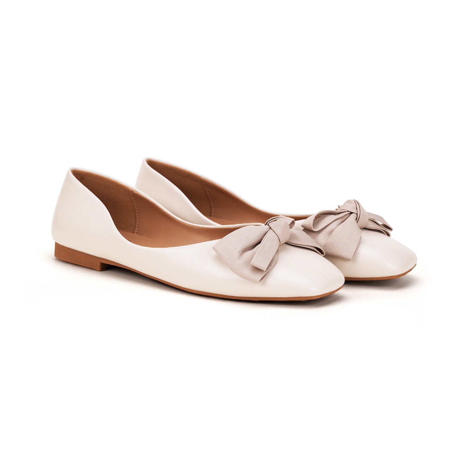 Soft Beige Bowknot Flats: Step into comfort and style with these soft beige square-toe flats, showcasing a delicate bowknot detail and crafted in soft leather for a versatile and polished appearance