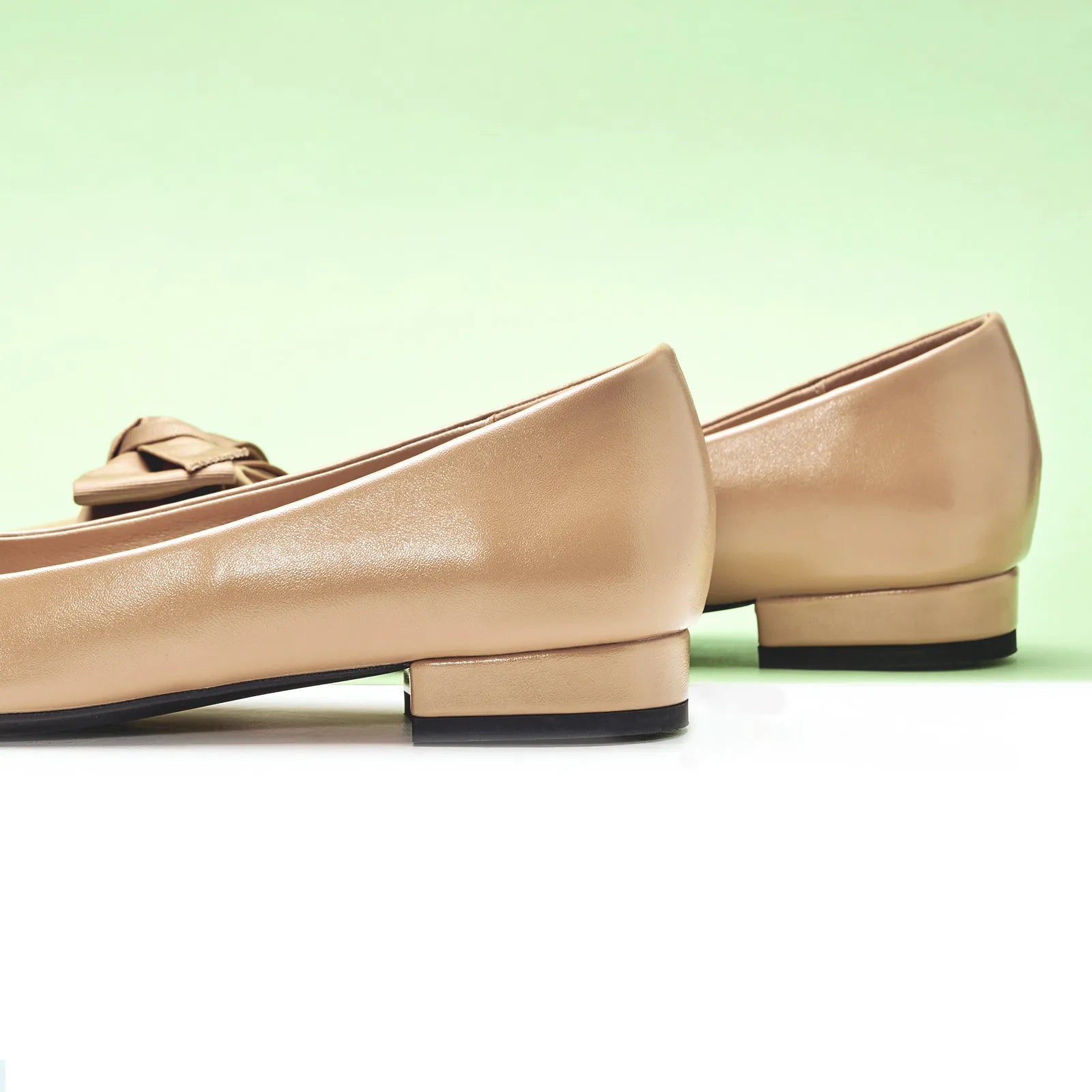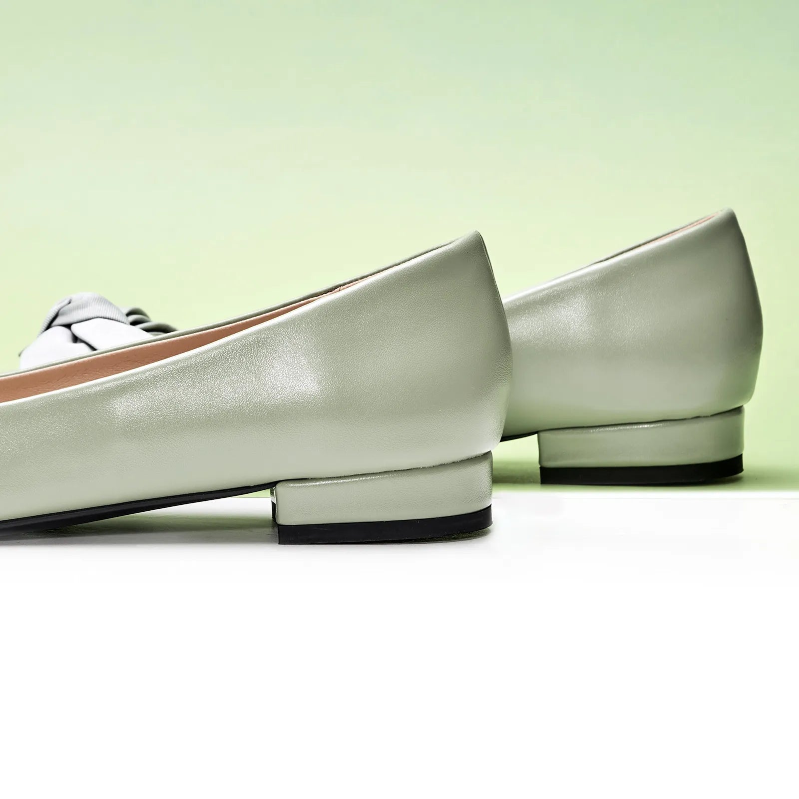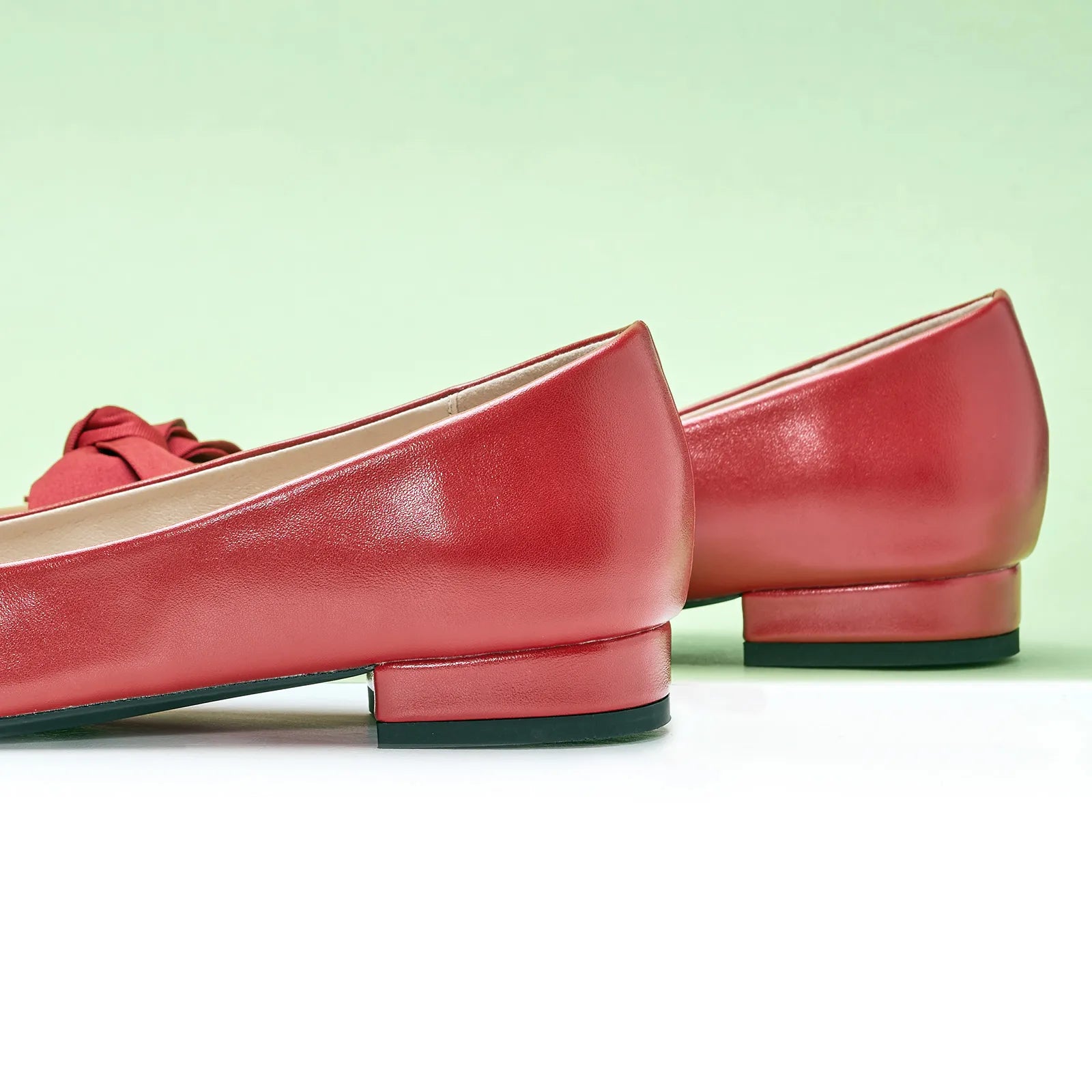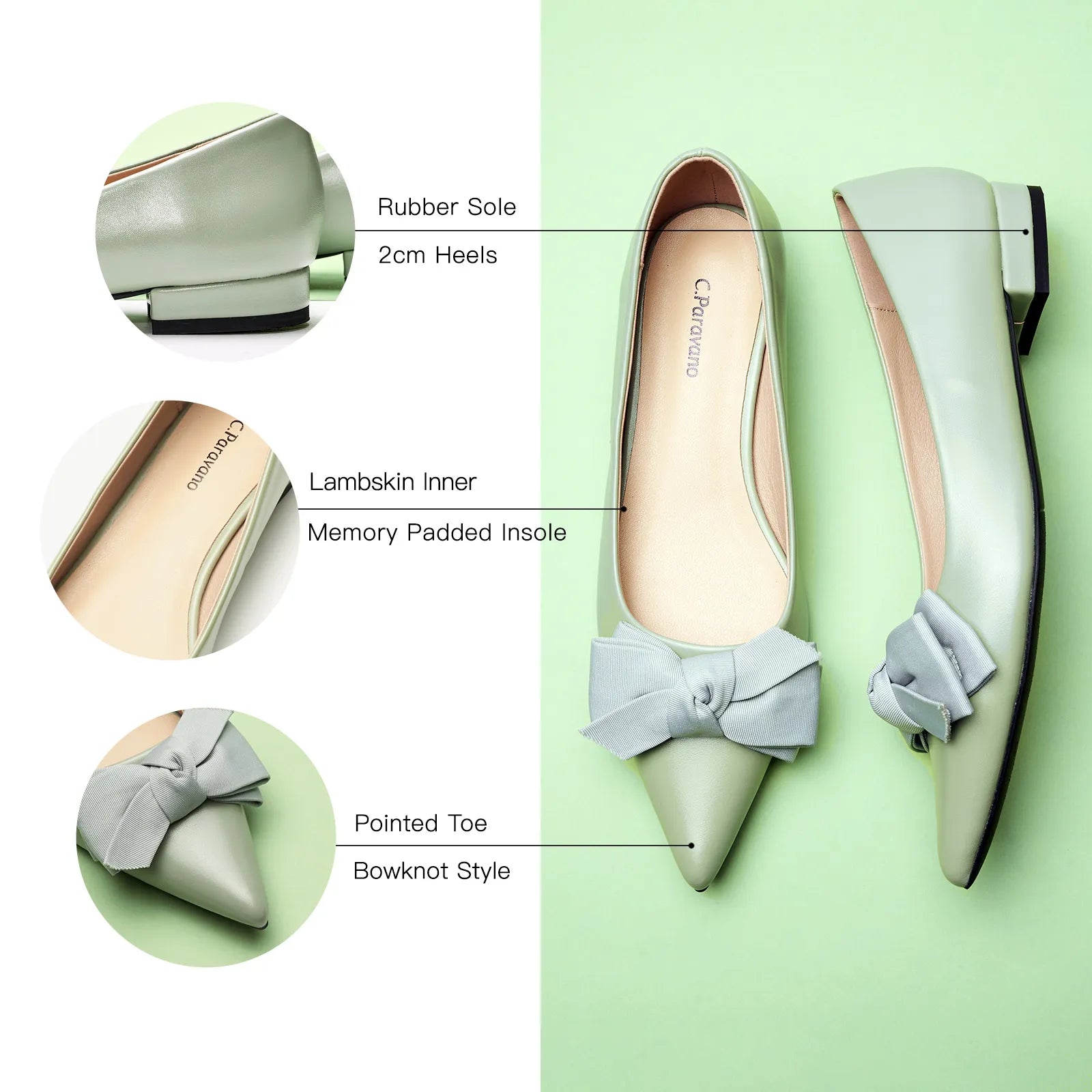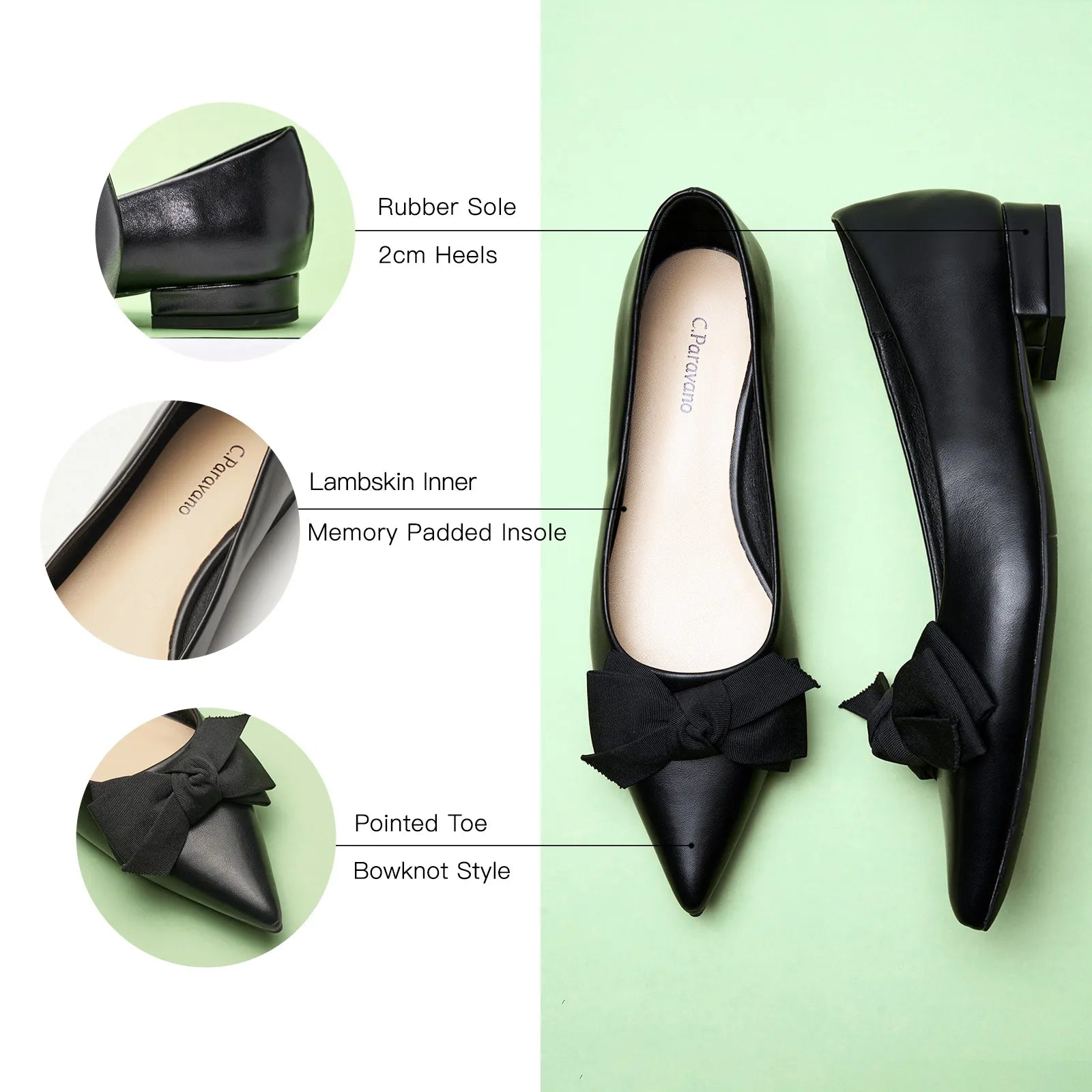 Grace your wardrobe with these matte pointed-toe flats. Fitting leather construction enhances the fit, and a grippy sole adorned with iconic prints ensure non-slip and wear resistance. Offset by a large cloth bow at the vamp, these flats capture attention with every step, striking the perfect balance between casual and elegant style.