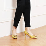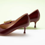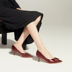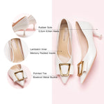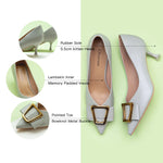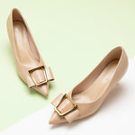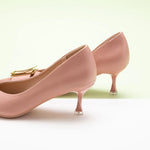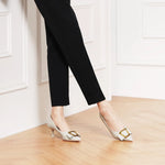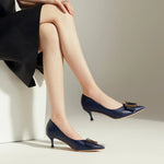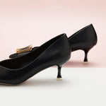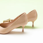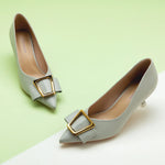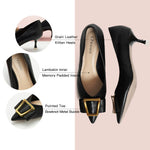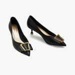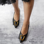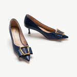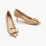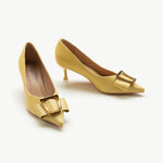 - A classic silhouette adorned with golden two-tier metal buckles at the pointed toes, and an exquisite kitten heel, these modern Elena pumps complement your style with ease.