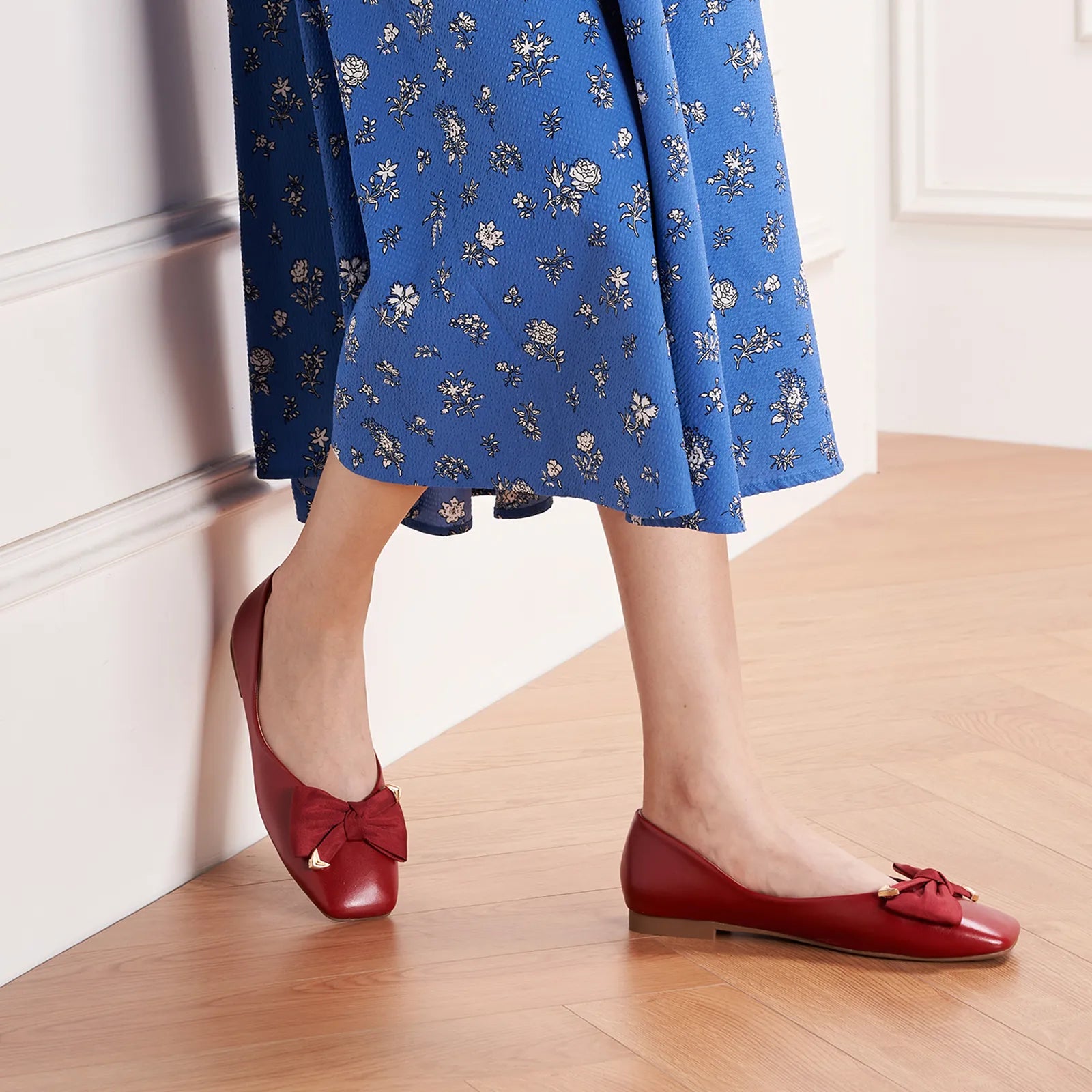 - Ornée de détails métalliques, le nœud papillon classique en tissu confère à cette paire un style plus sophistiqué, exprimant l'élégance d'une femme. Le bout carré offre un confort optimal. Avec sa finition en cuir mat souple et sa semelle antidérapante ornée d'imprimés emblématiques, elle respire l'élégance discrète et la noblesse.