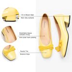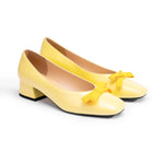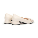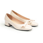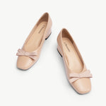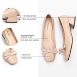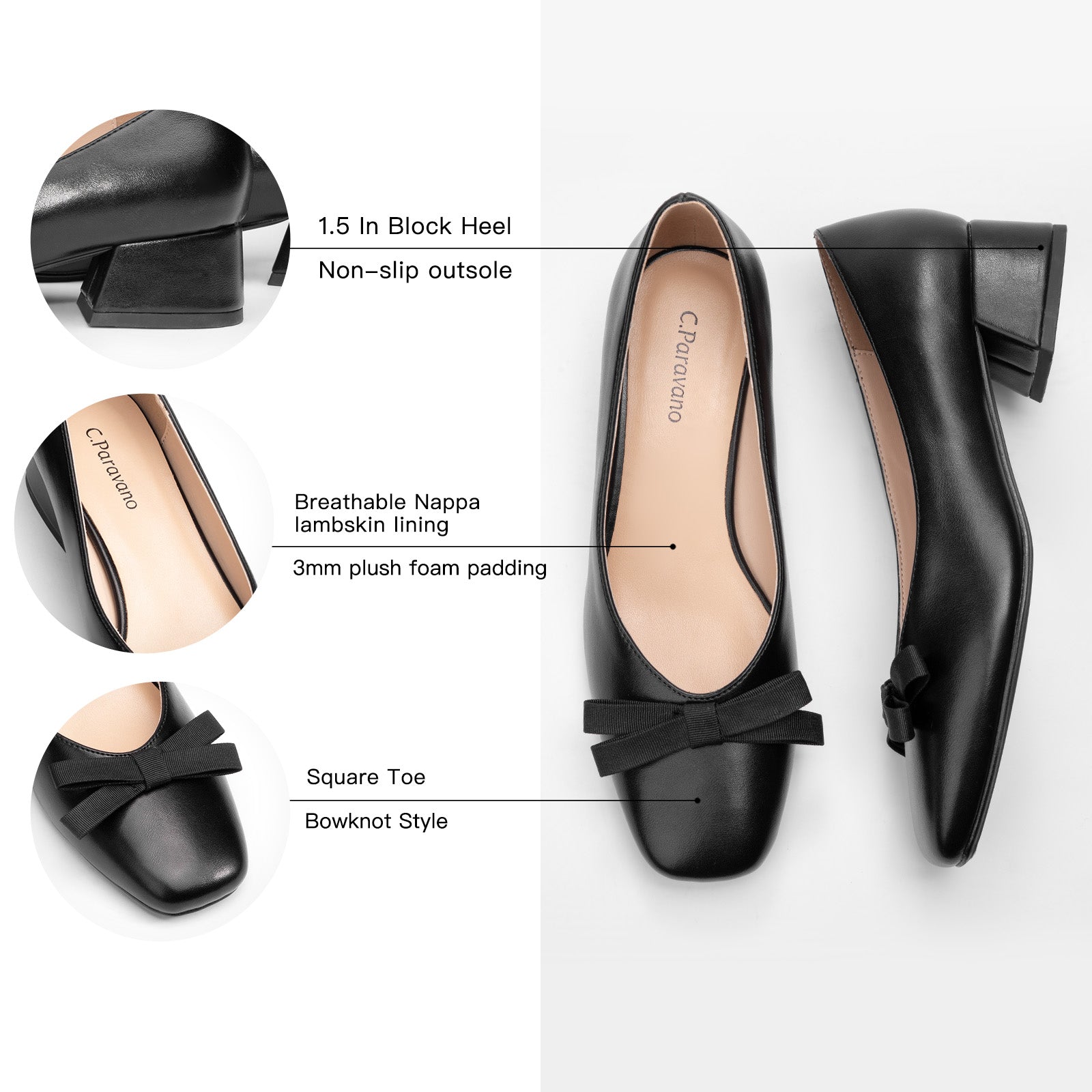 - Dainty yet striking, these low heels add a stunning touch to any wardrobe. The exquisite finish, adorned with a bow detail, elevates feminine allure. A rounded square-toe design and sturdy block heel boost both comfort and height, making this pair ideal for weekend dates.