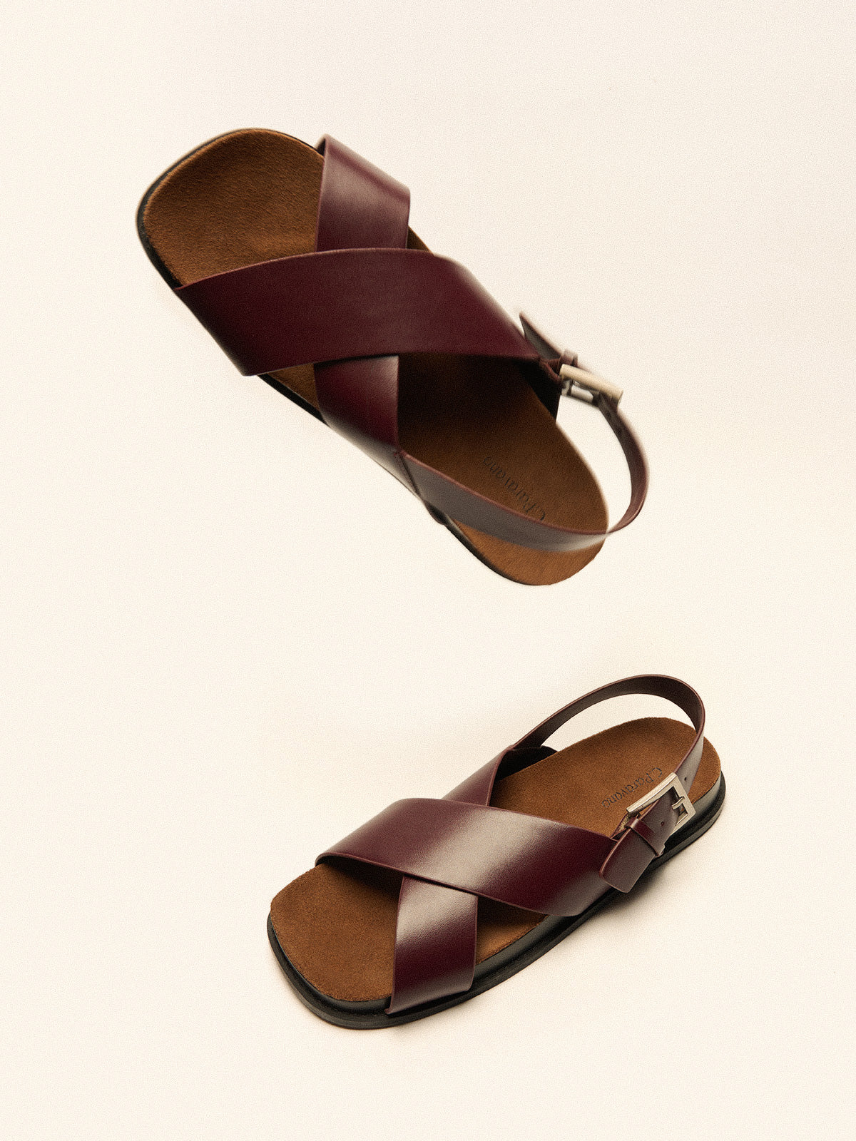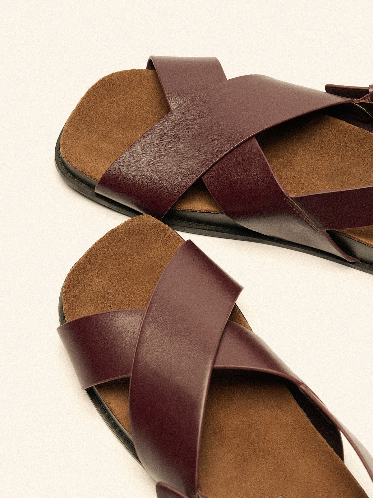 - The sandal gives you a new take on the classic two-strap design, with crossover straps and an elegant pin buckle, available in both leopard print and solid color options.The suede footbed lining,made from genuine split leather with a napped finish, offers a soft texture and excellent moisture absorption. It wraps the foot comfortably for a look that improves with wear, while the anti-slip insole and wear-resistant sole provide enhanced stability and comfort.
