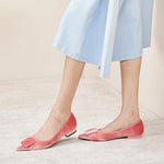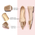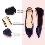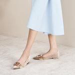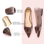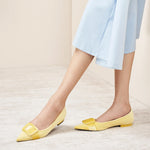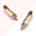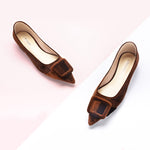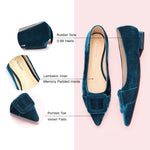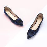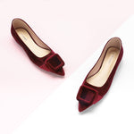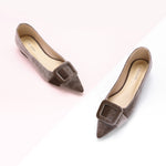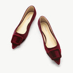 These pointed-toe flats are unlike any other. They offer a touch of exquisite elegance, thanks to the luxurious velvet finish and the grippy sole adorned with iconic prints. The eye-catching buckle, coupled with textured finish, adds stylish tactility to your outfit. Let them serve as the foundation of your daily wardrobe!