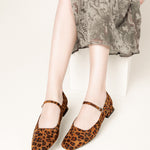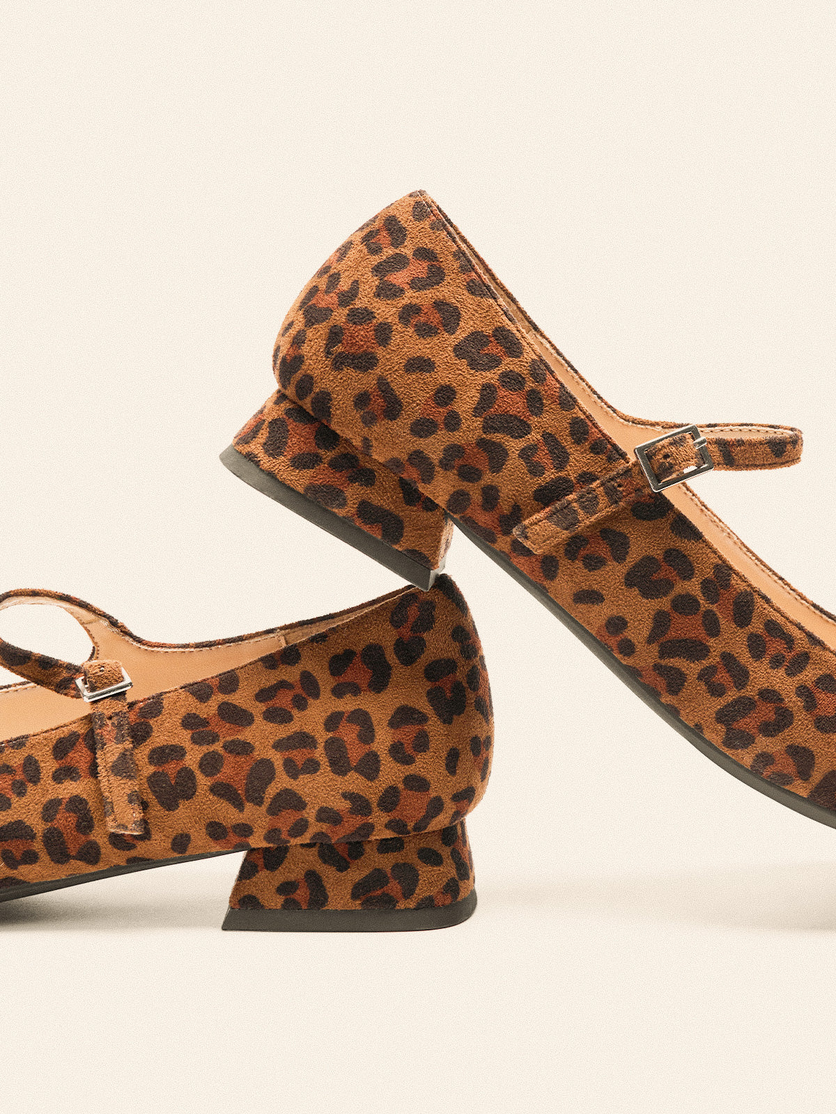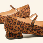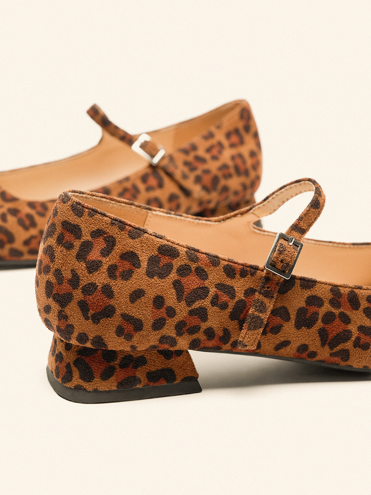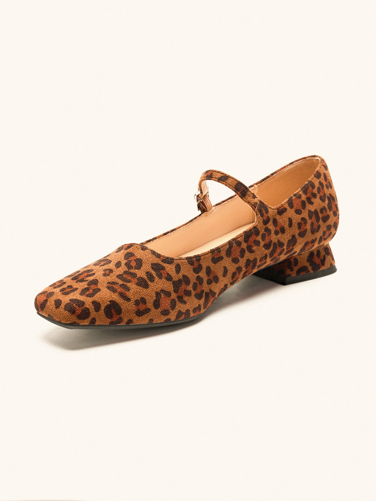 - Step into timeless elegance with these classic Mary Jane flats.Crafted with a sleek, minimalist design, they feature a smooth finish that adds a touch of sophistication to any outfit.The delicate buckle strap ensures a secure fit, while the almond-toe silhouette offers both comfort and style. Available in leopard prints and solid colors, these Mary Janes seamlessly blend versatility with chic appeal, perfect for both daily wear and special occasions.